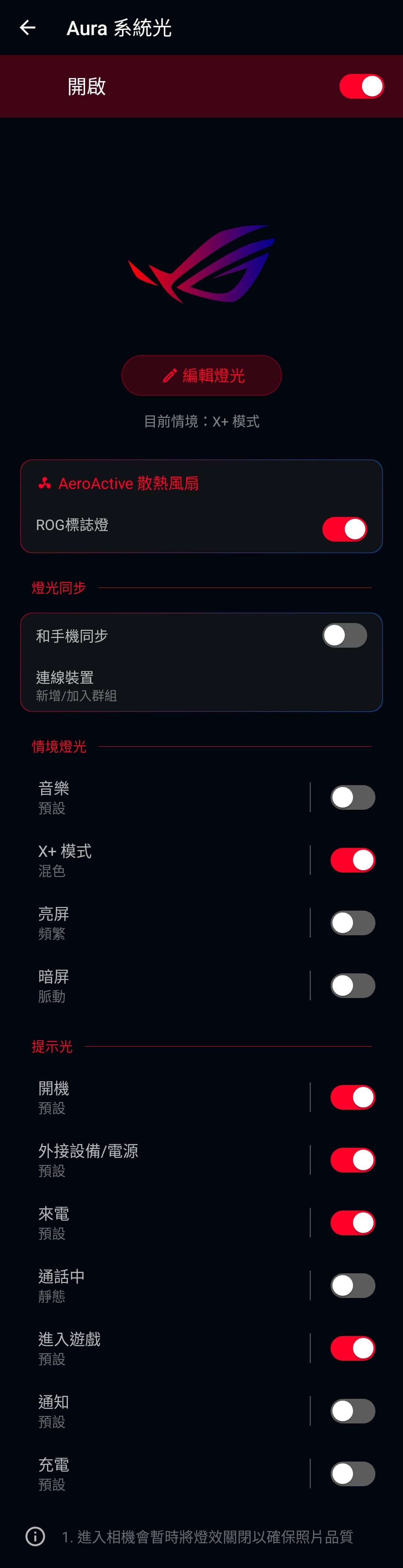 ▲ 裝上「空氣動力風扇 5」之後,原本的「X 模式」會自動變成「X+ 模式」,而且因為風扇背面有支援 Aura RGB 燈效的 ROG Logo,你也可以設定它的顯示效果,以及顯示時機。