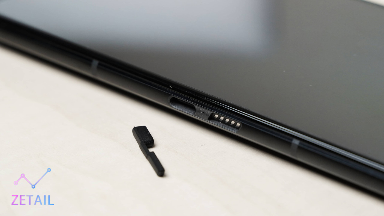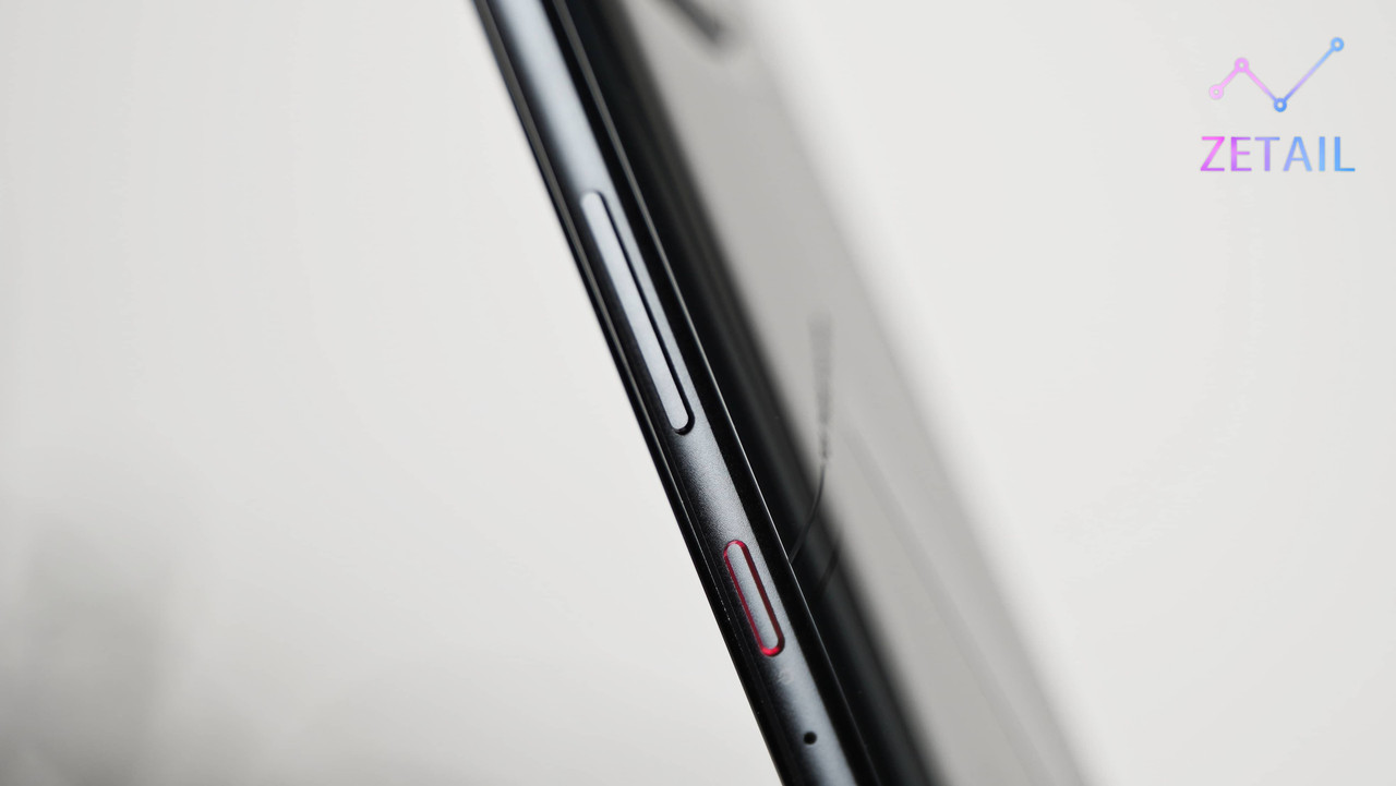 ▲ 手機左側一樣有第二個 USB-C 充電插槽,讓使用者邊充電、邊玩遊戲時,手不會卡到充電線;右邊的金屬觸點則是用來連接專屬配件用的,之前兩個都是 USB-C 插槽,大概是太多使用者插錯孔,所以就改成現在的設計。(但也因為插槽的改變導致防塵塞很容易鬆脫…)
