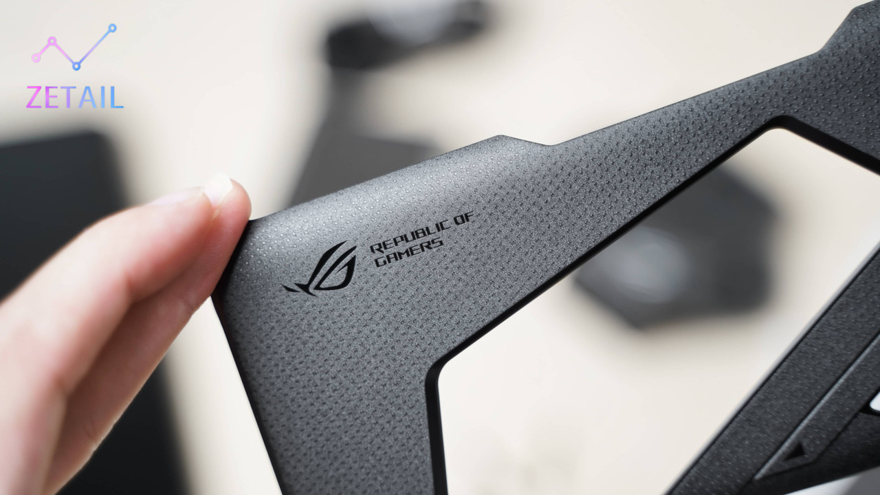 ▲ 隨附的 Aero 專屬保護殼採用鏤空設計,幾乎遍佈著小小的凸點,因此手感還不錯,ROG 招牌的「電域文」設計只出現在一角。