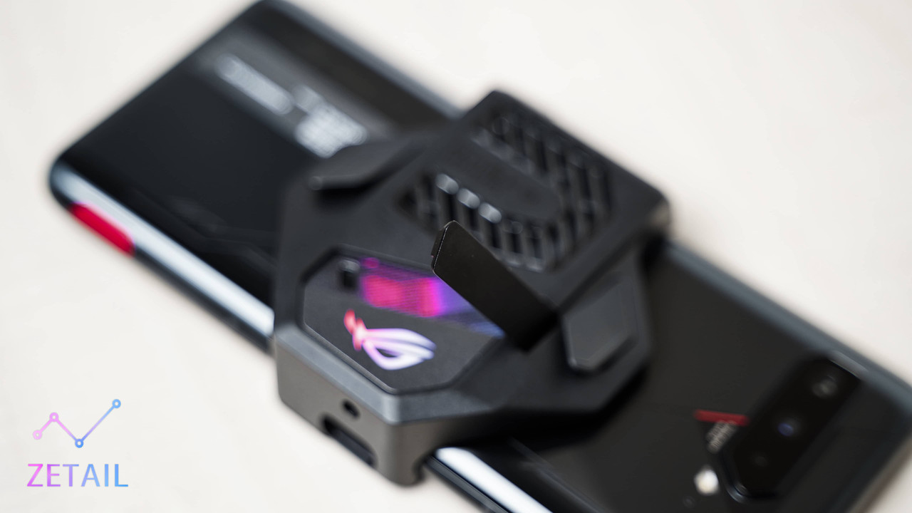 為了控制住 S888+ 的發熱,做一名稱職的「馴龍高手」,ROG Phone 5s Pro 採用 CPU 中置的設計,以及面積更大的 3D 液態均溫板、石墨隔熱片,如此一來,再搭配隨附的「空氣動力風扇 5」就能「直搗黃龍」,直接針對 CPU 熱源進行散熱;根據 ROG 自己的測試,CPU 溫度最多可以降低 10°C、手機表面溫度最多可以降低 15°C,這樣的效果如何?直接來測試看看就知道。