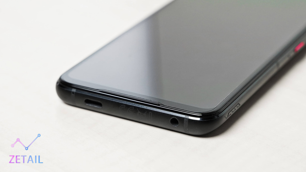 ROG Phone 5s Pro 的正面幾乎是全平面玻璃,最邊緣處有微微的 2.5D 曲面,但範圍真的很小,主要是讓螢幕跟邊框的過渡更無縫,完全不會影響到觸控,這同樣是 ROG Phone 系列一直以來「遊戲本位」設計的體現。