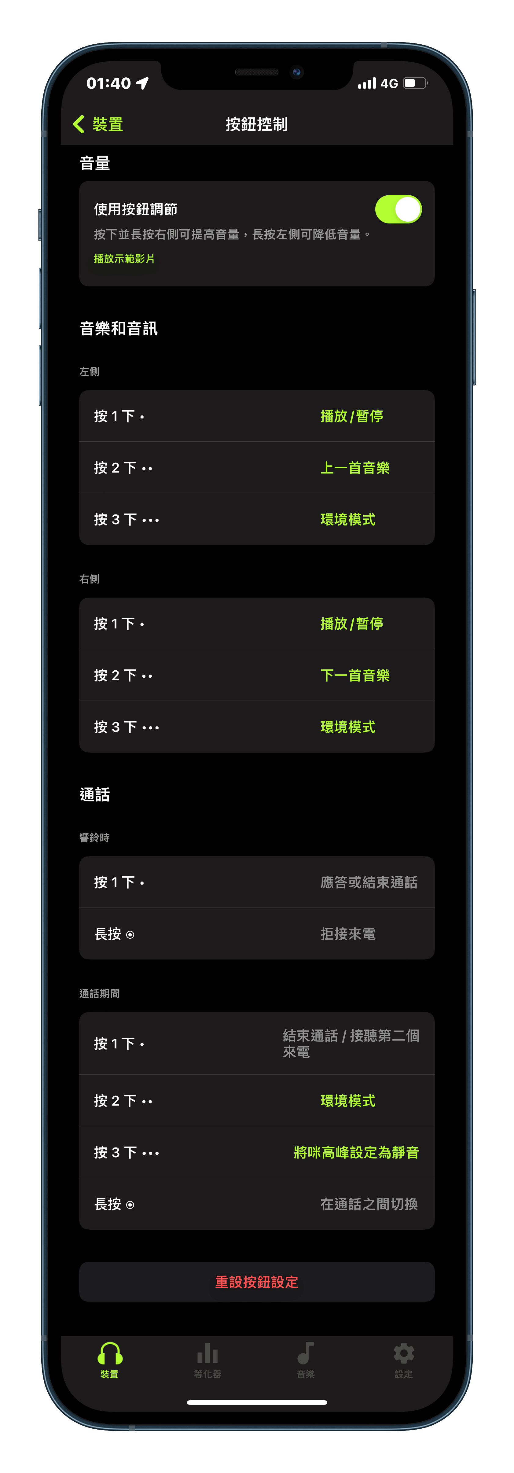 ▲ 進入「ShurePlus PLAY」的「按鈕控制」功能,便能進行很細緻的按鍵功能設定。