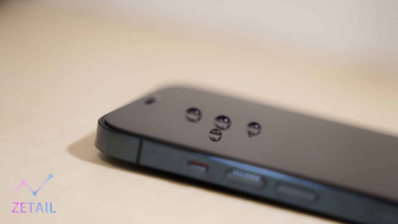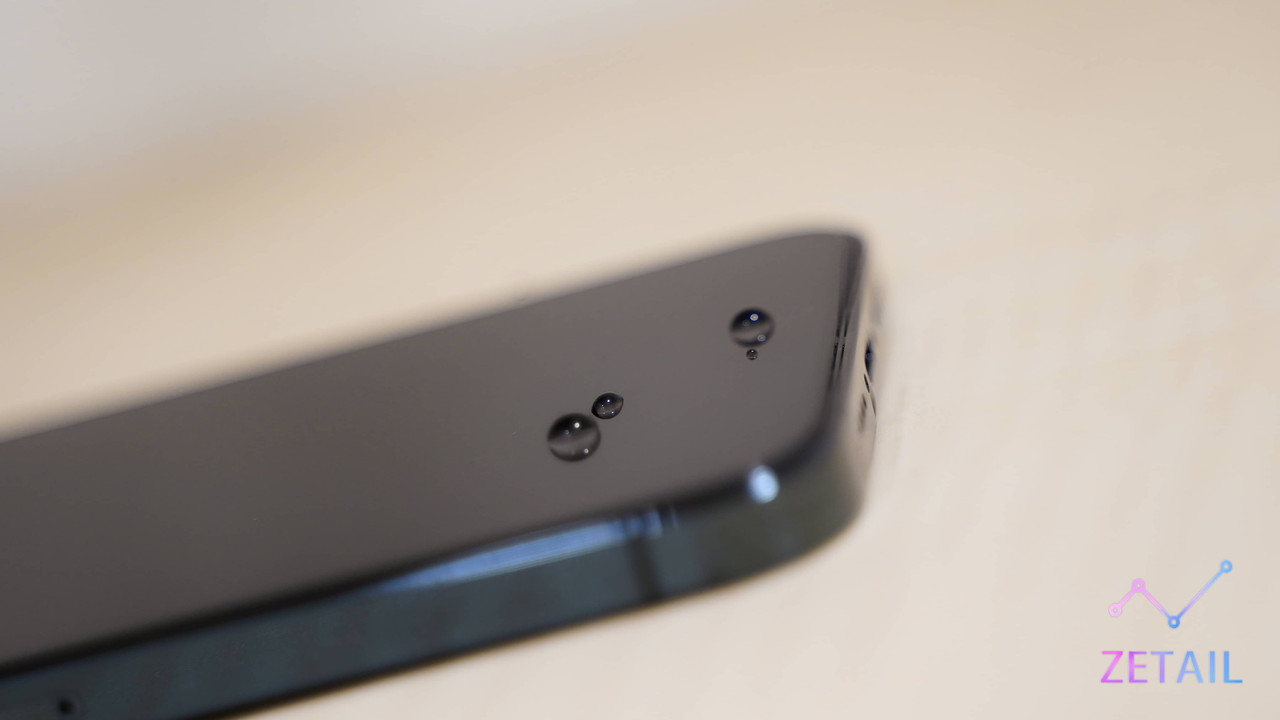 「抗指紋」是我比較能分享實際使用感受的方面,如果你有長期關注 ZETAIL 的文章,應該知道我很在意這部分。Simmpo 液態螢幕抗菌膜內含「氟素」,除了手機螢幕本身的疏水疏油塗層,氟素也常用於汽車鍍膜與市售的防水噴霧,可想而知它有著減少指紋附著、強化疏水疏油的效果。