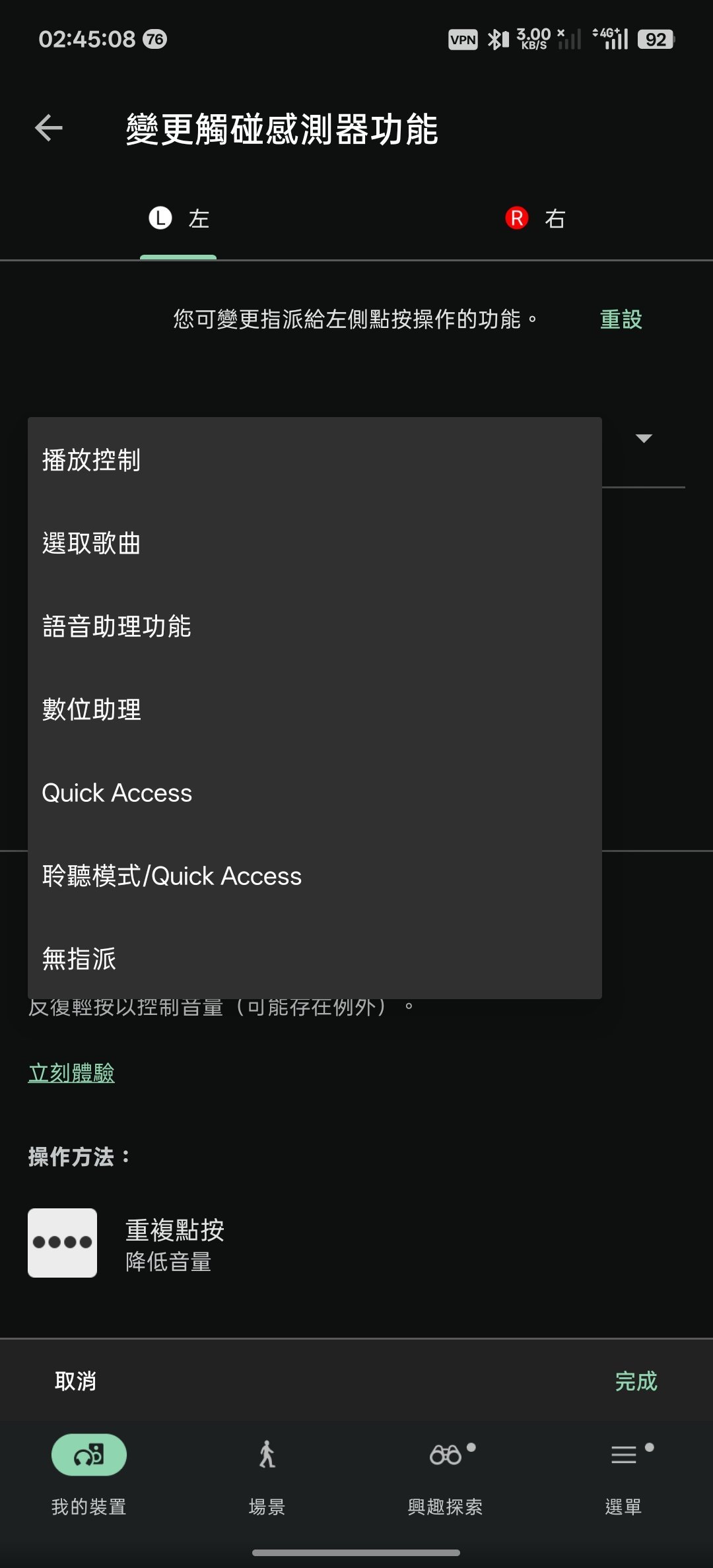 ▲ 你可以在 app 內調整耳機的觸控功能,但調整的自由度不算高。