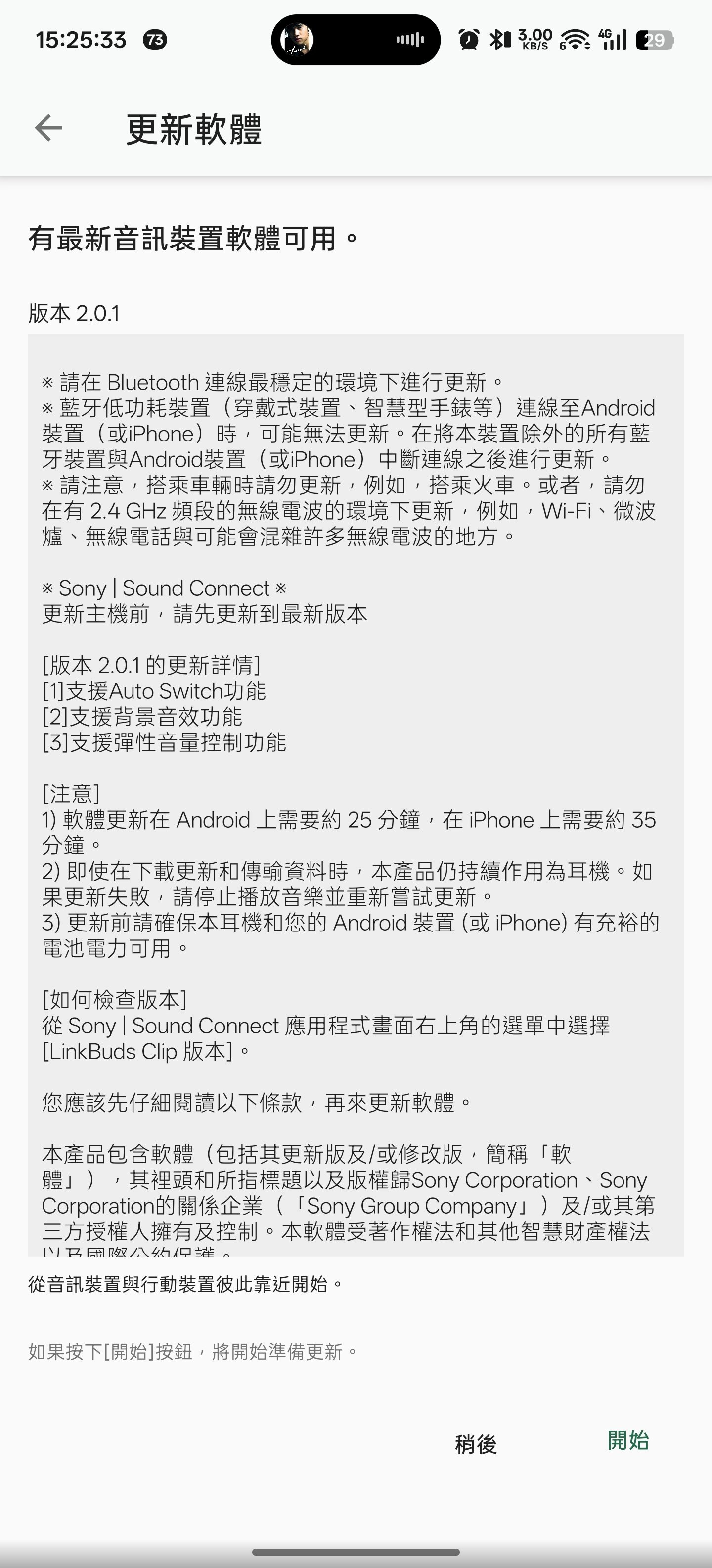 ▲ 如果 LinkBuds Clip 有新版韌體,也是直接在 app 內更新。像我前幾天就收到加入了「彈性音量控制」和「背景音效」功能的最新版,下面我也會提到它們好不好用。
