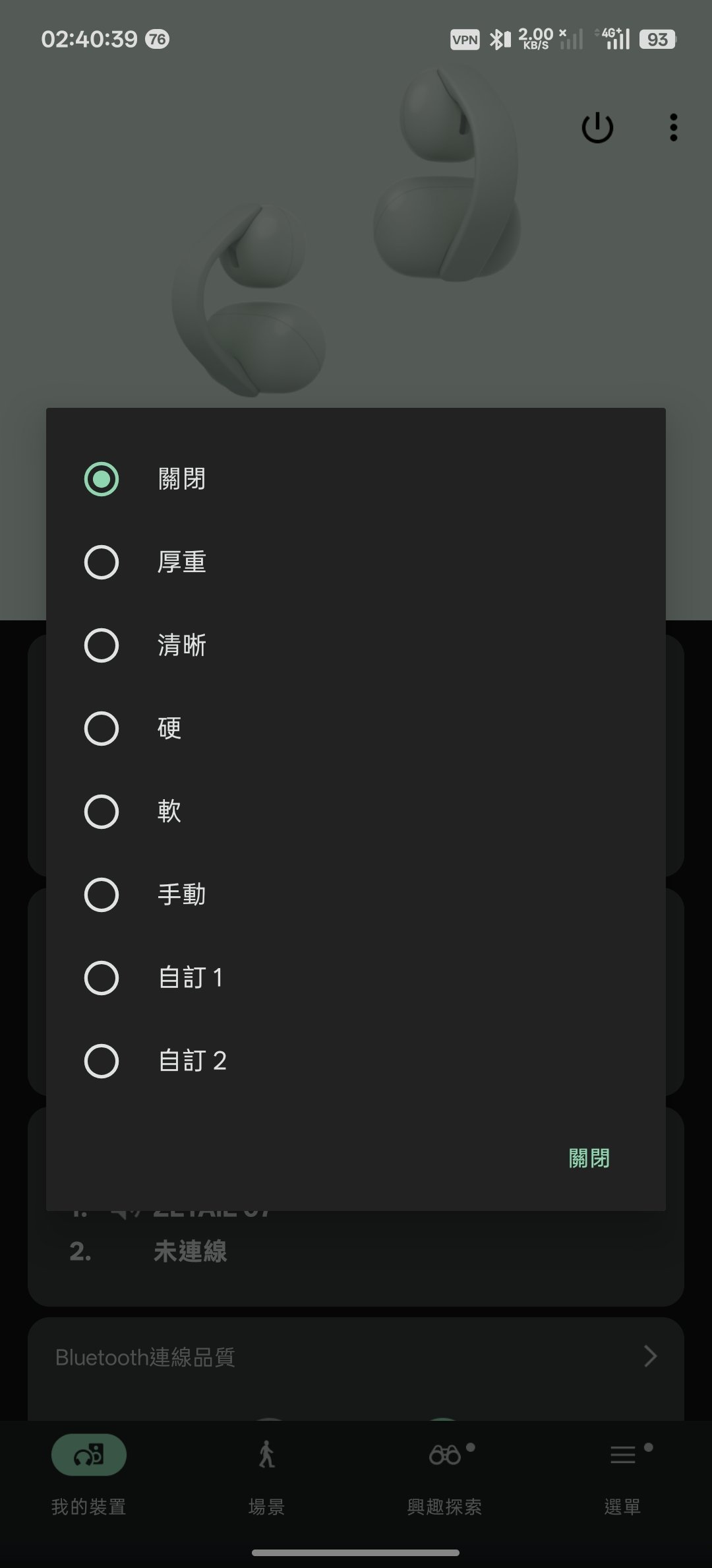 如果你對 LinkBuds Clip 的聲音不滿意,在 app 內也有五種預設的 EQ(等化器)可以選擇。此外,你還能手動新增自己的 EQ,嘗試改變它的聲音風格。