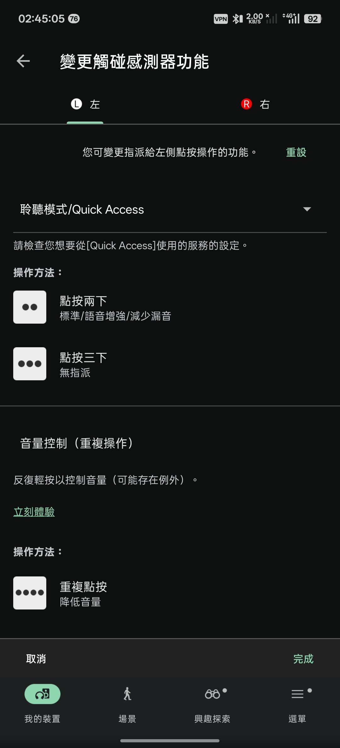 ▲ 你可以在 app 內調整耳機的觸控功能,但調整的自由度不算高。