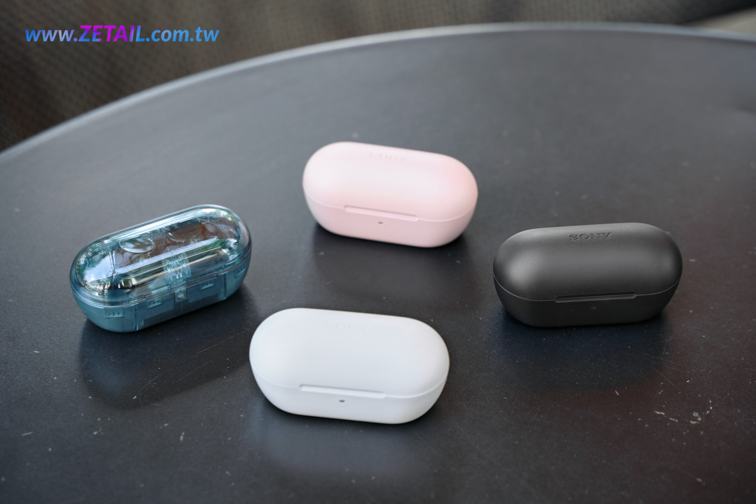 先來聊聊顏色吧!WF-C710N 跟前代一樣有四種顏色,除了黑色與白色得到保留以外,其餘則換上兩個新色:粉紅色與冰藍色。粉紅色類似砂粉色,看起來清淡優雅,不會有太濃或廉價的感覺,非常耐看;冰藍色是這次的小亮點,因為它是四個顏色中,唯一採用透明外殼設計的,從充電盒到耳機都能直接看到內部零件,配上藍色,清新沁涼的風格很適合已經到來的夏季,也頗具科技感,怪不得才剛開賣就缺貨。Sony 果然還是很懂調色!