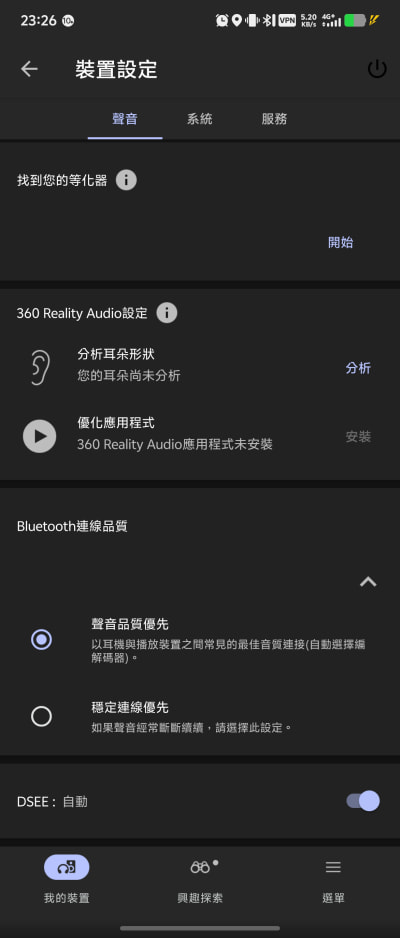 ▲ Sony 的聲音產品專屬 App 除了改名為「Sound Connect」,也換上新首頁。上方可以看到耳機和充電盒的剩餘電量,下方則是各項常用功能,比過去更直觀、順手。