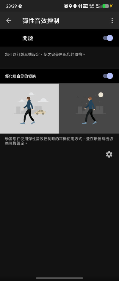 ▲ WF-C710N 的彈性音效控制功能。打開之後,耳機會學習你在不同情境下偏好的降噪模式,並且自動切換。