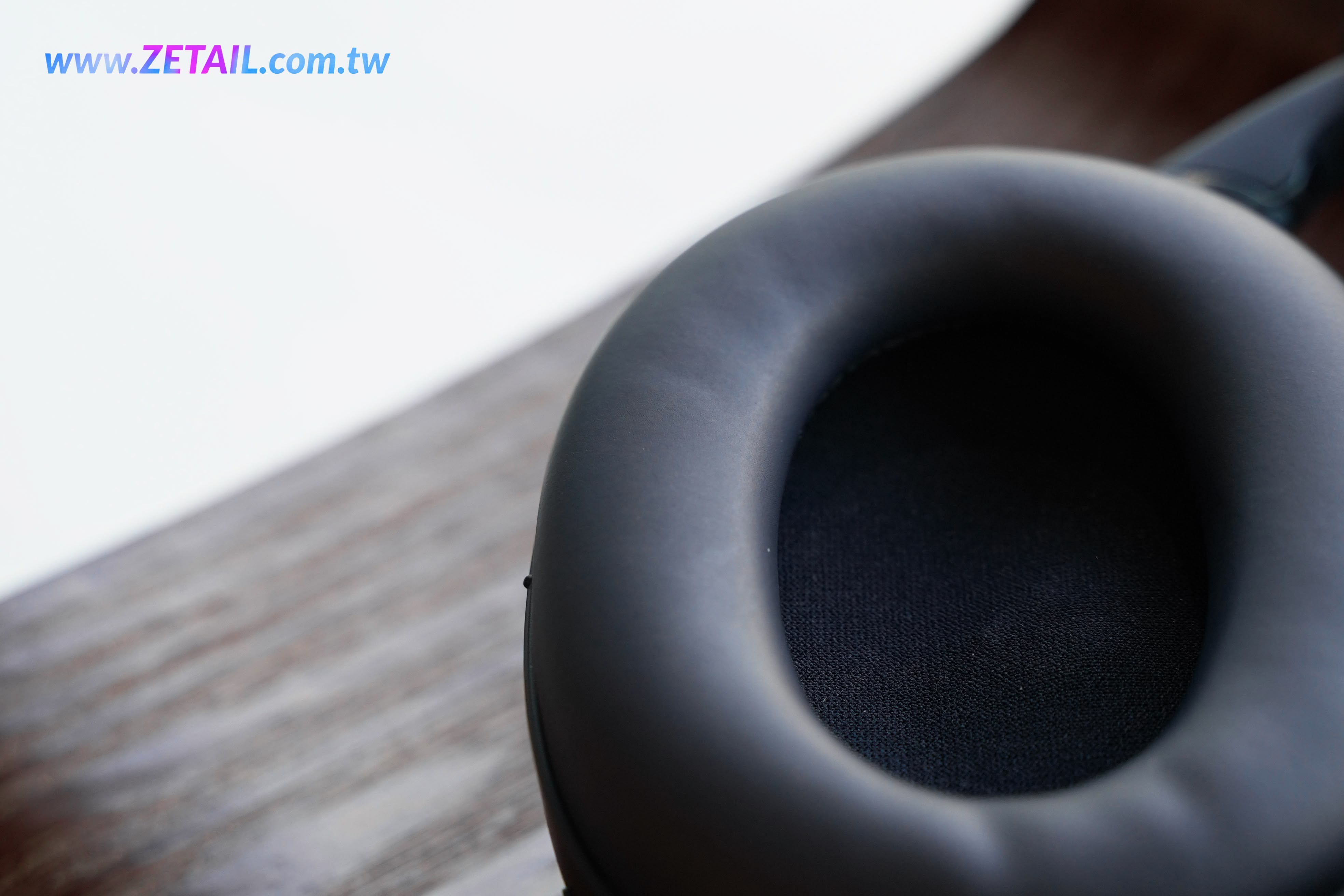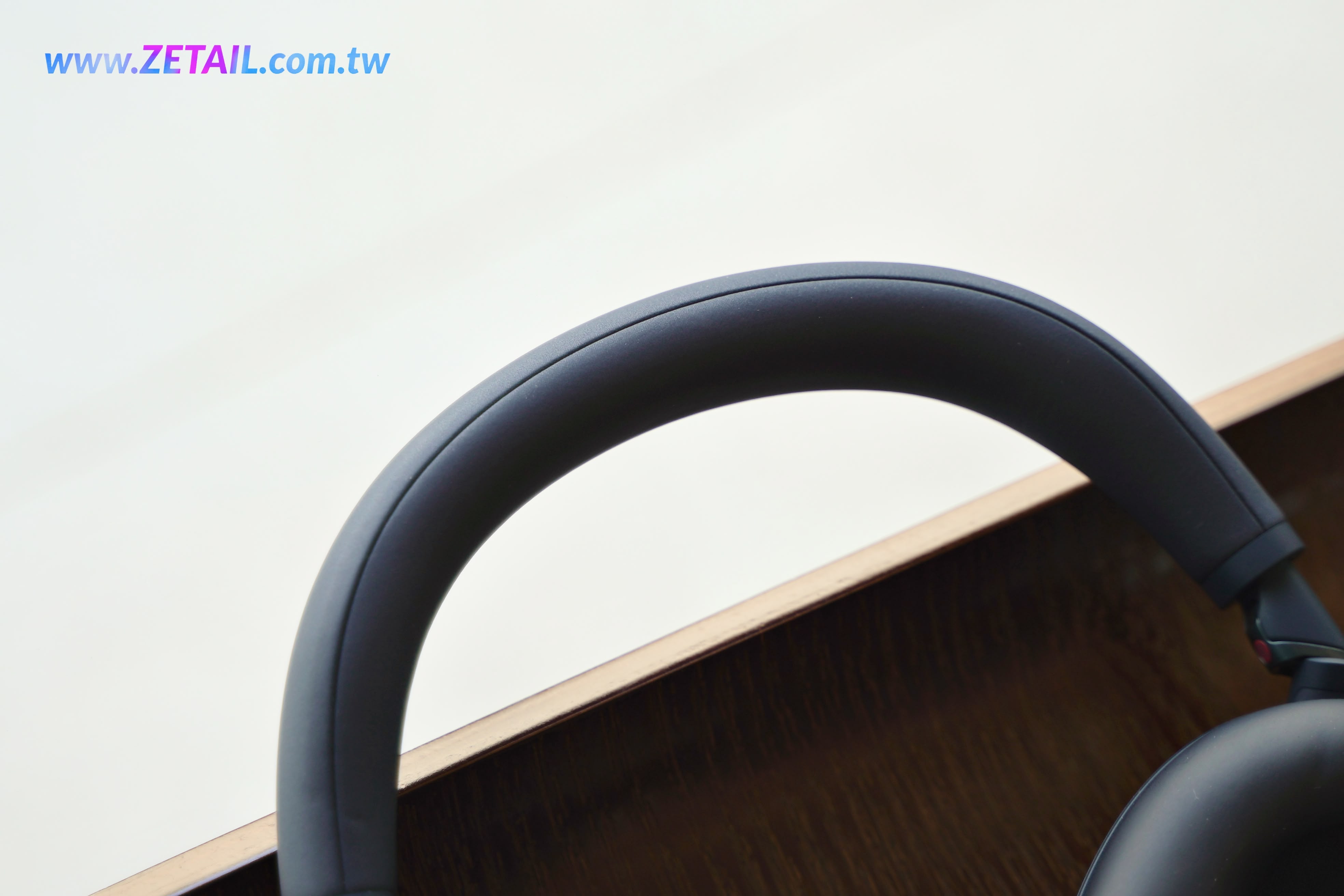 WH-1000XM6 的頭墊和耳墊都跟一般耳罩式耳機很不一樣,首先是耳墊採用純素皮革材質,觸感很平滑,沒有常見的皮革紋路;其次是頭墊跟耳墊都非常薄,尤其是頭墊,幾乎沒有什麼緩衝空間,所以不像大部分耳機為了提升配戴舒適性會特別將它們增厚。這雖然進一步讓 WH-1000XM6 的外觀與眾不同,但配戴體驗是否會受到影響?答案是會,也不會──它戴起來依然舒適,只不過也連帶出現一些問題。