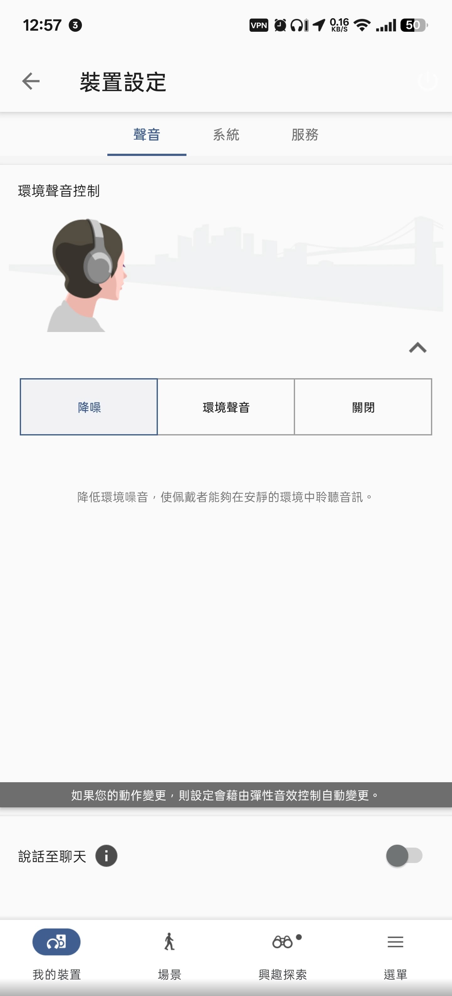 比如,你設定靜止打開降噪模式,但在排隊結帳的時候,你可能會先手動切換到環境音模式,以便掌握店員的引導、或是輪到自己的時候跟店員對話。然而,這個過程需要一段時間,以至於耳機又因為偵測到你處於靜止狀態,自動切換到降噪模式。於是你就必須不斷手動介入切換模式,反而手忙腳亂。這是我真實遇過的狀況,所以我最後還是把「彈性音效控制」關掉了。但這算不上 WH-1000XM6 的問題,因為它的確完成了任務,只能說這個功能不太適合在需要跟別人交流的情境使用。