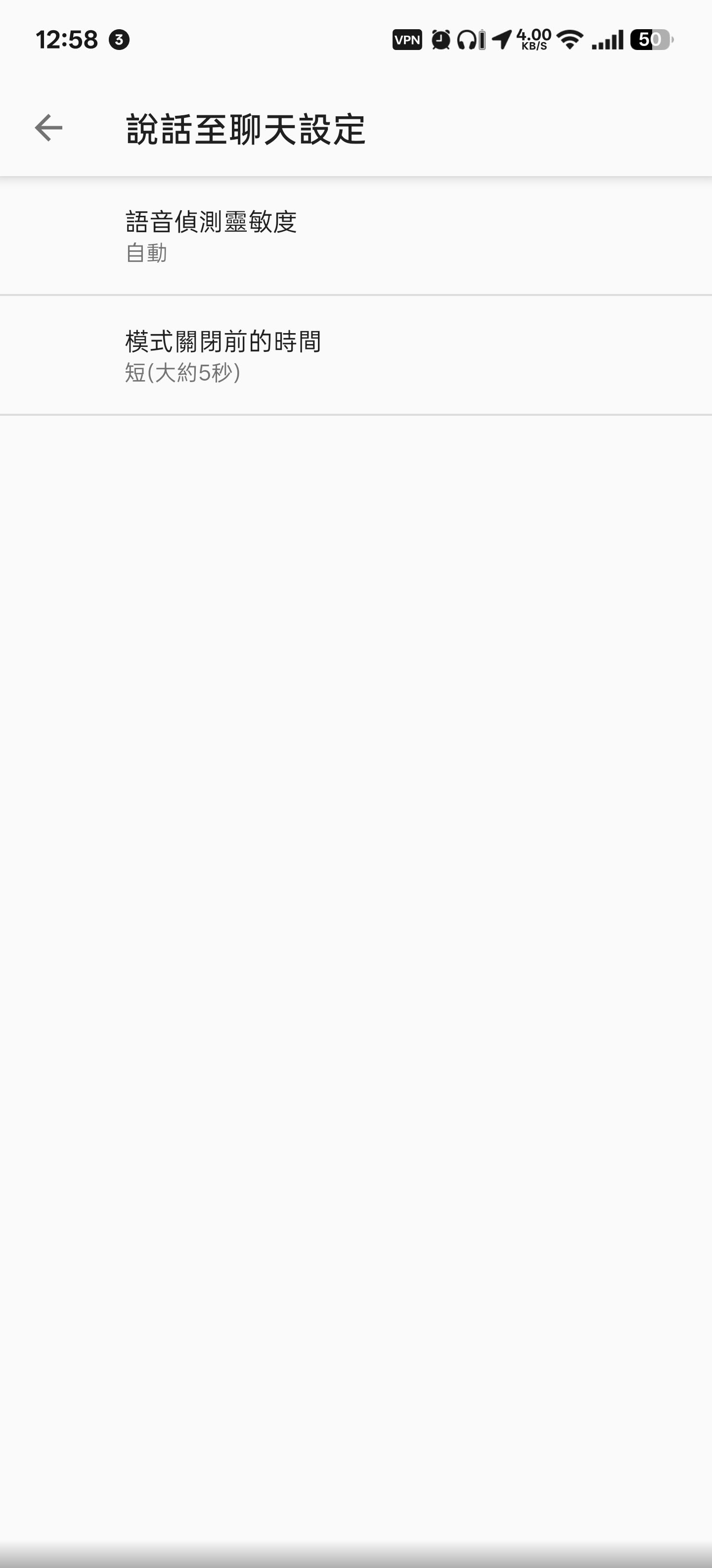 ▲ 你可以在 app 裡面設定「說話至聊天」功能的偵測靈敏度和恢復時間。