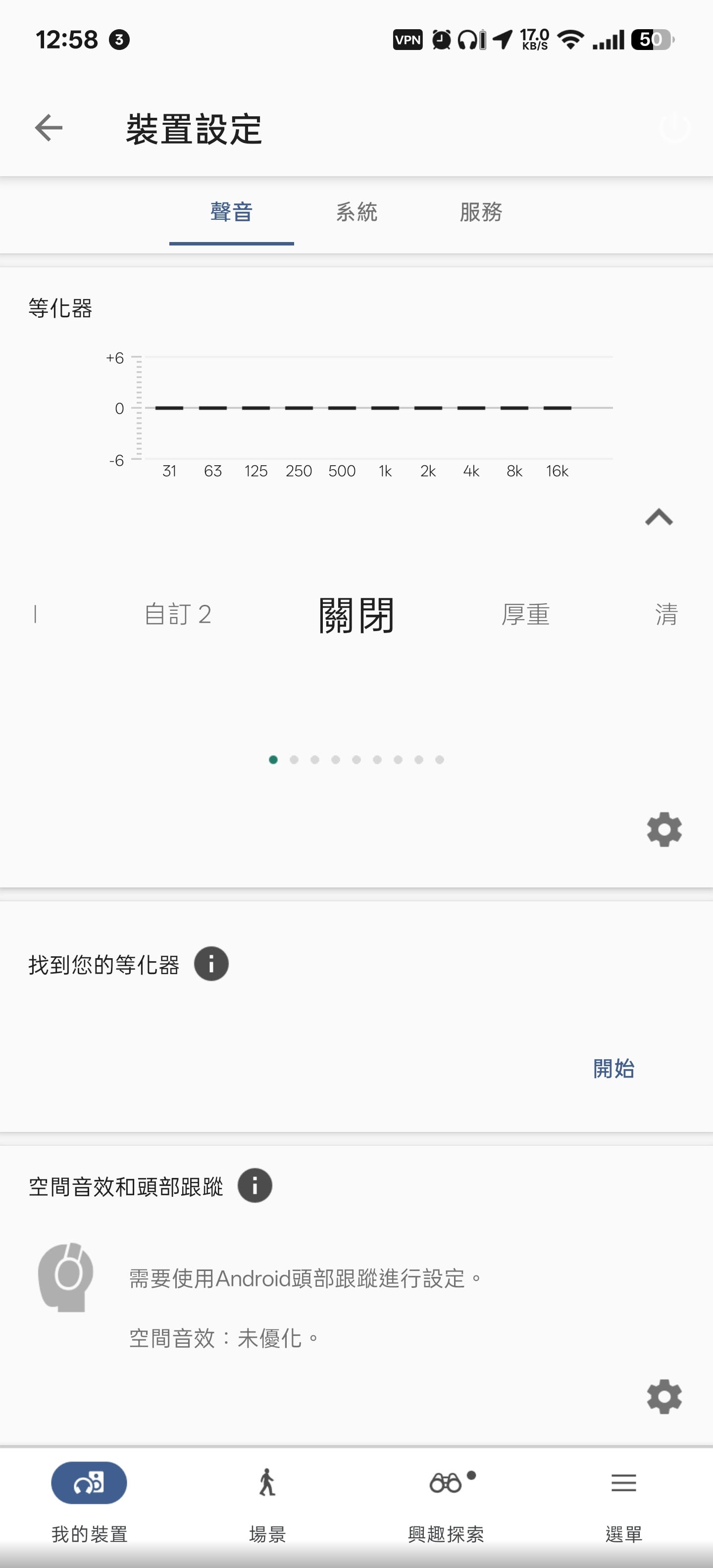 ▲ 在「場景」的頁面中,你可以設定當你在不同的地點或使用情境下,讓耳機自動播放特定的播放清單。但它需要使用 Spotify,我沒辦法測試。