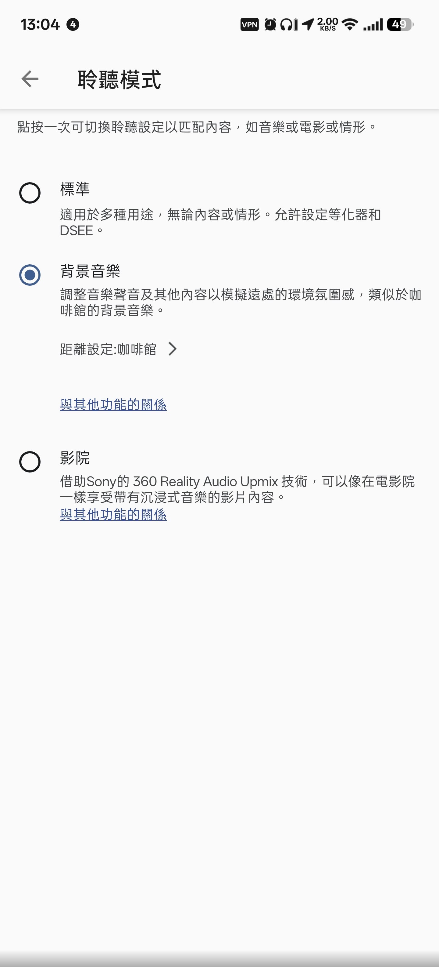 ▲ 新加入的「聆聽模式」裡面有「背景音樂」和「影院」兩個模式,當你想要音樂像是在咖啡廳裡面放出來的感覺時,就可以使用。