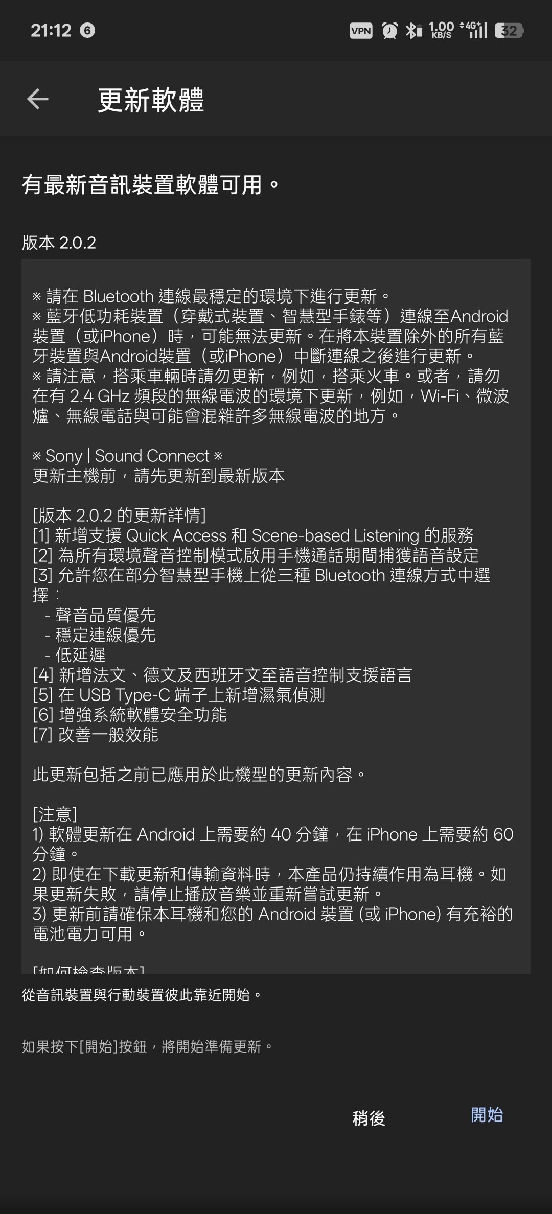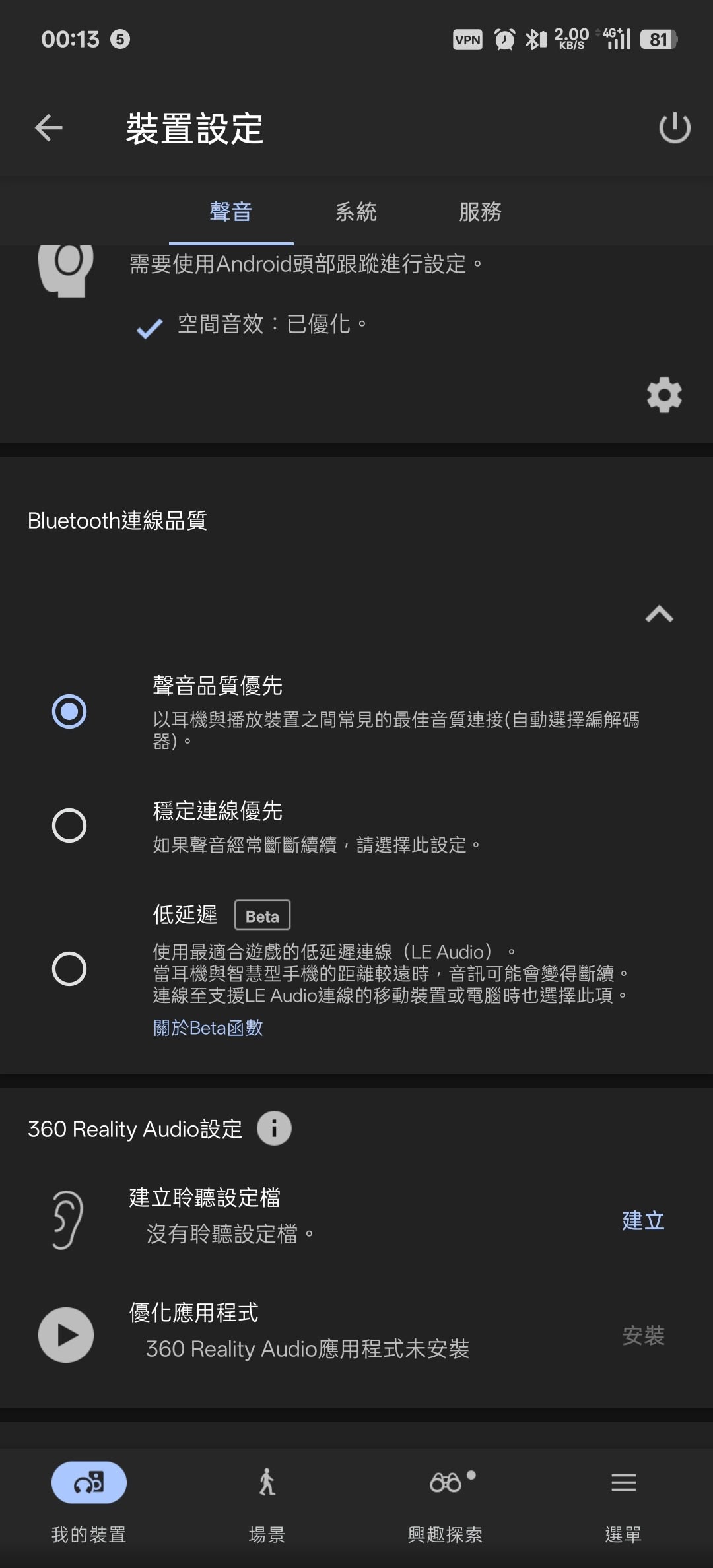 ▲ 將 WH-1000XM6 更新到最新韌體版本之後,可以在藍牙連線品質的選單中看到「低延遲」的選項,但可能是我的裝置不支援,所以一直無法啟用。