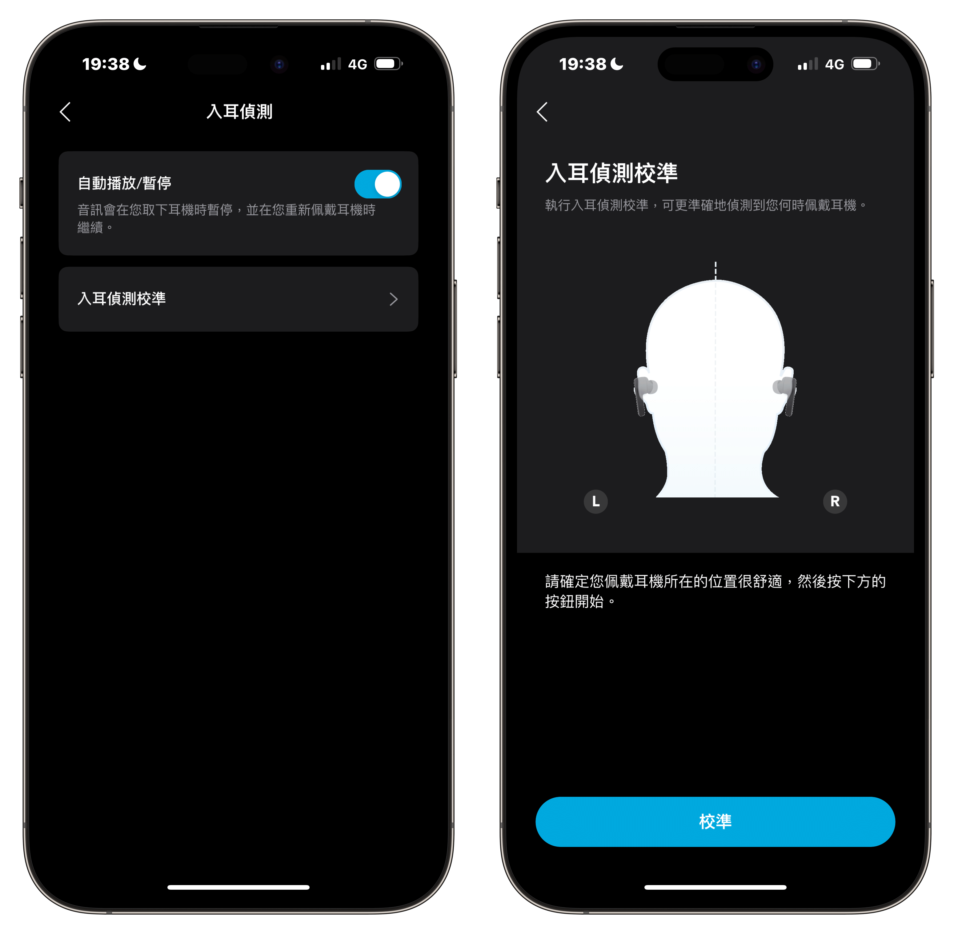 ▲ 配戴偵測(入耳偵測)的功能可以開關;同時,裡面有個「入耳偵測校準」的功能,校準之後,偵測的速度似乎有稍微變快。