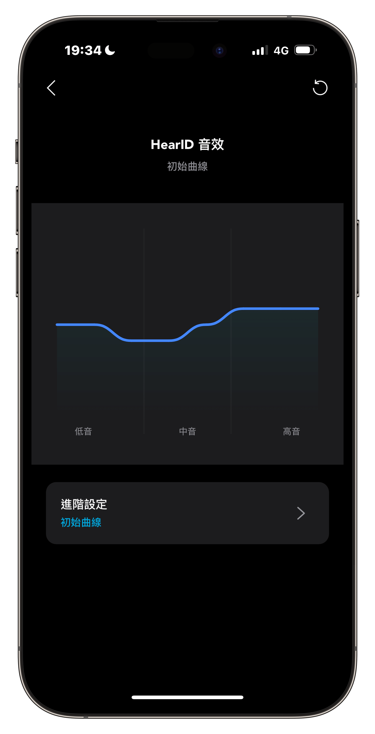 ▲ 如果你對測試出來的 HearID 音效不滿意,除了重新測試,也可以在進階設定調整。「自訂 HearID」就是讓你直接調整 HearID 的曲線;「偏好音樂類型」則是讓你在 HearID 的音效之上,再套上一個 EQ。