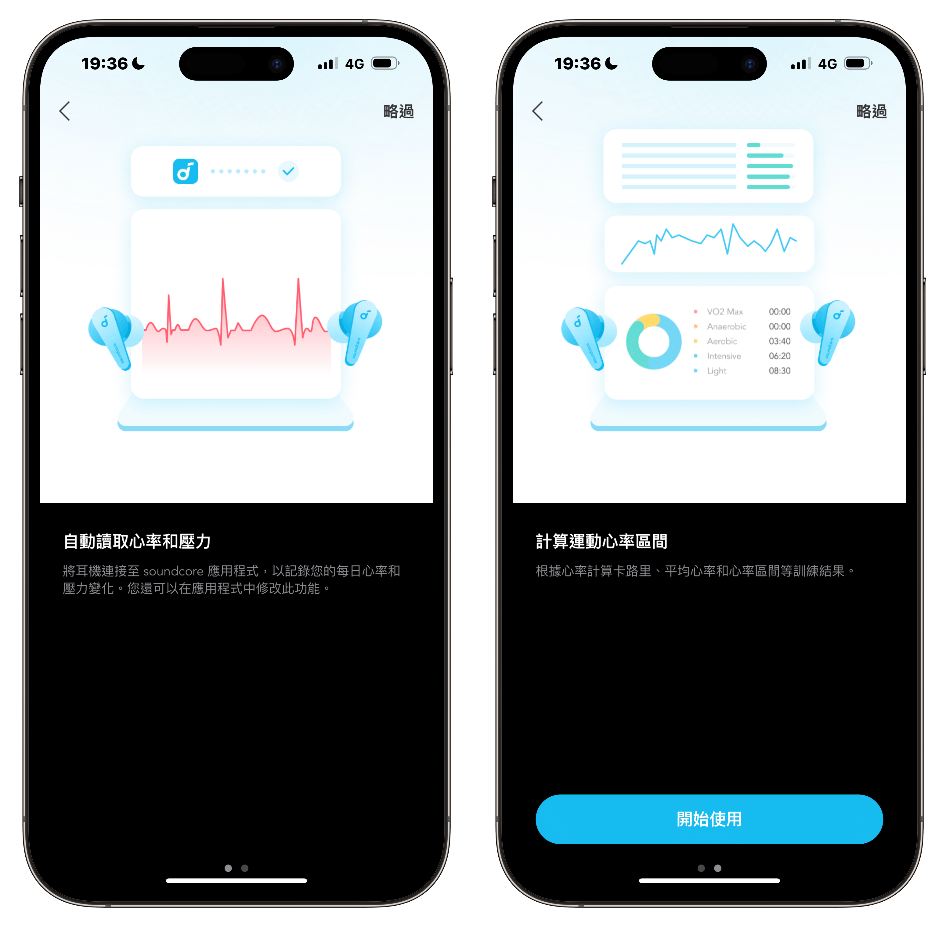 Liberty 4 的其中一個賣點是加入了心率感應器,支援新的「心率偵測」功能。重點是,它不只可以偵測心率,soundcore 還一併做了運動記錄、壓力偵測等功能,這為心率感應器找到了實際的使用情境 ── 畢竟很少人聽音樂聽到一半會突然想來量個心率 ── 如果能讓 Liberty 4 融入使用者的日常生活,記錄身體狀況變化、運動情形,勢必可以大幅提高實用性。這種更高層次的關照,也解釋了為什麼這些功能會被統稱為「Wellness」(健康)。