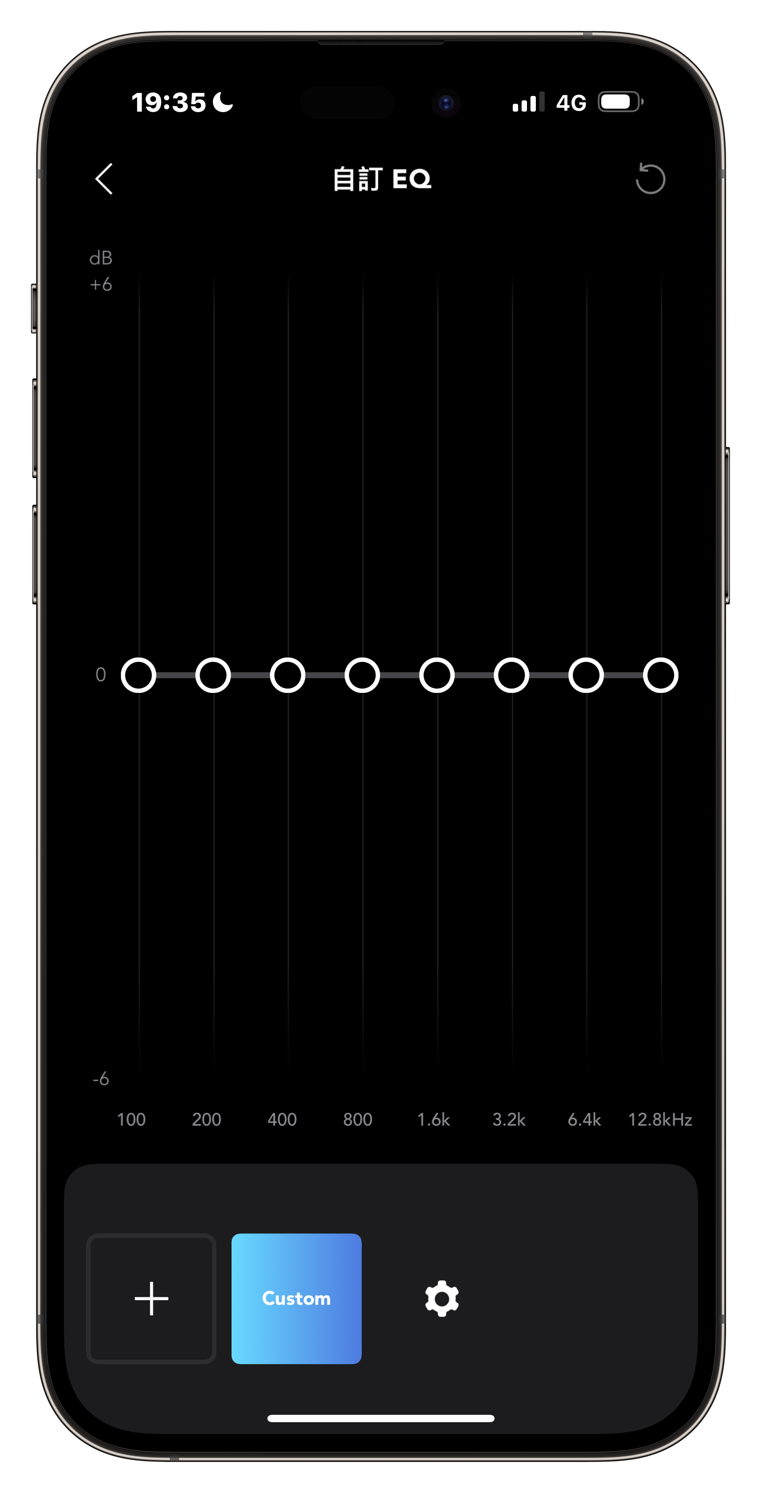▲ 「自訂 EQ」提供 8 個聲音頻段,你可以上下拉動來調整它們的音量,藉此創造專屬的 EQ。
