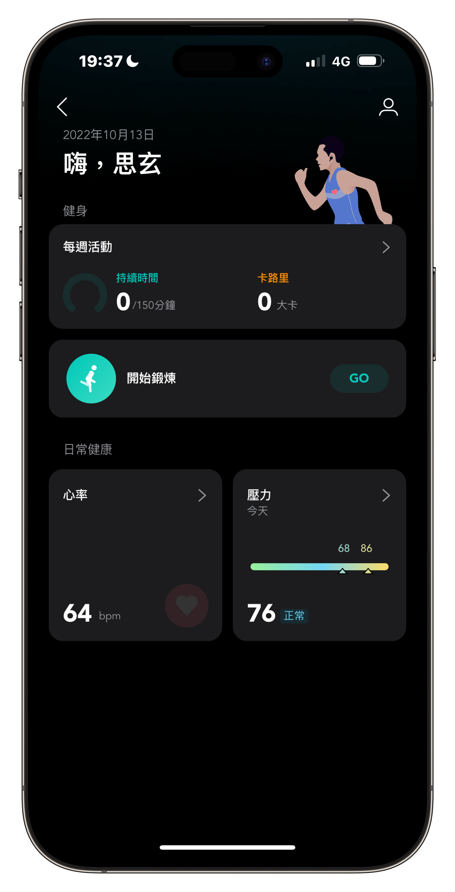 soundcore Wellness 目前有心率、壓力偵測,以及健身三大功能。Liberty 4 會每隔一段時間偵測你的心率跟壓力,之後你就能看到以日、週、月為單位的心率和壓力折線圖,還有一些簡易分析。健身的部分,soundcore 提供了幾個預設的課程,像是基礎跑走、基礎慢跑等,讓你跟著指導進行運動,對剛開始運動的人而言非常實用;當然,你也可以用 Liberty 4 記錄其他運動的心率變化、心率區間分佈、卡路里等資訊,就像是簡易版的智慧手錶。