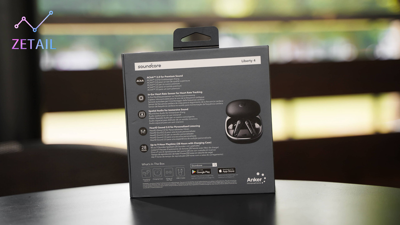 ▲ Liberty 4 使用的是 soundcore 一貫的「旗艦級」盒裝設計,質感很棒。耳機後的聲波圖形成一個「心形」更是帶有多重含義。
