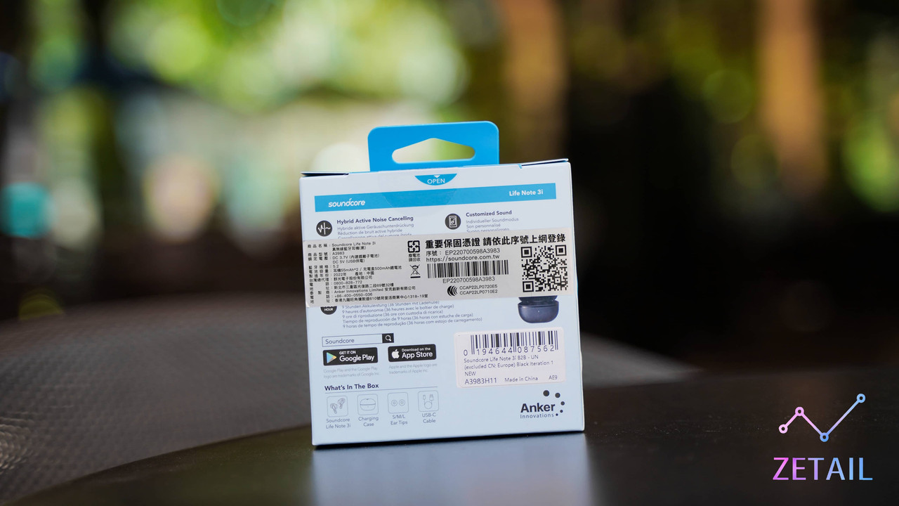 ▲ Life Note 3i 的盒裝維持 Soundcore 一貫的設計跟藍色配色。