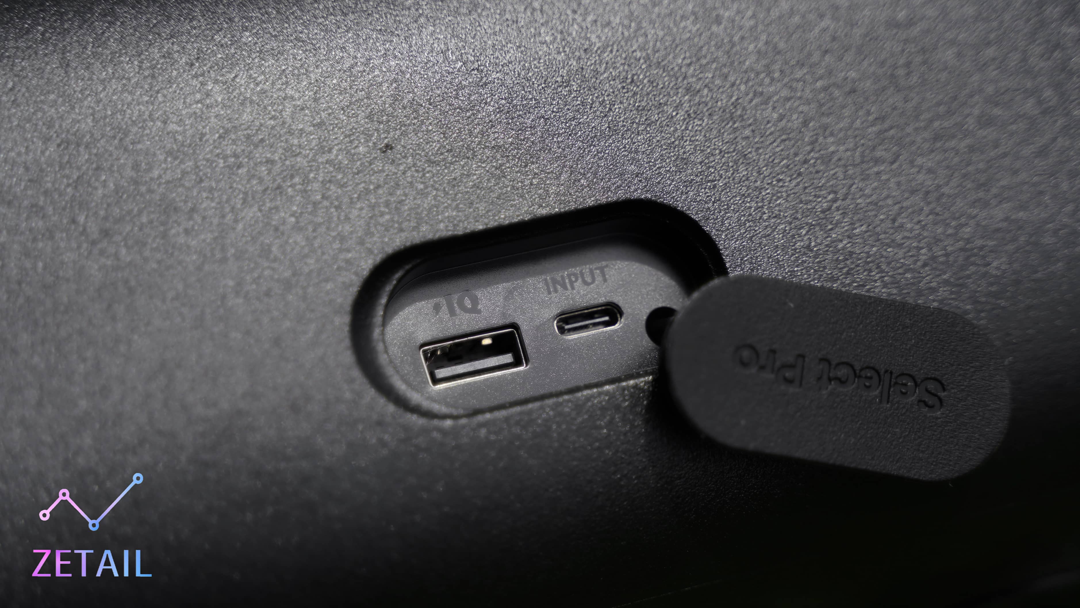 ▲ Select Pro 背面有兩個插槽,其中一個是用來幫自身充電的 USB-C 插槽,另一個就是用於幫其它裝置充電的 USB-A 插槽。