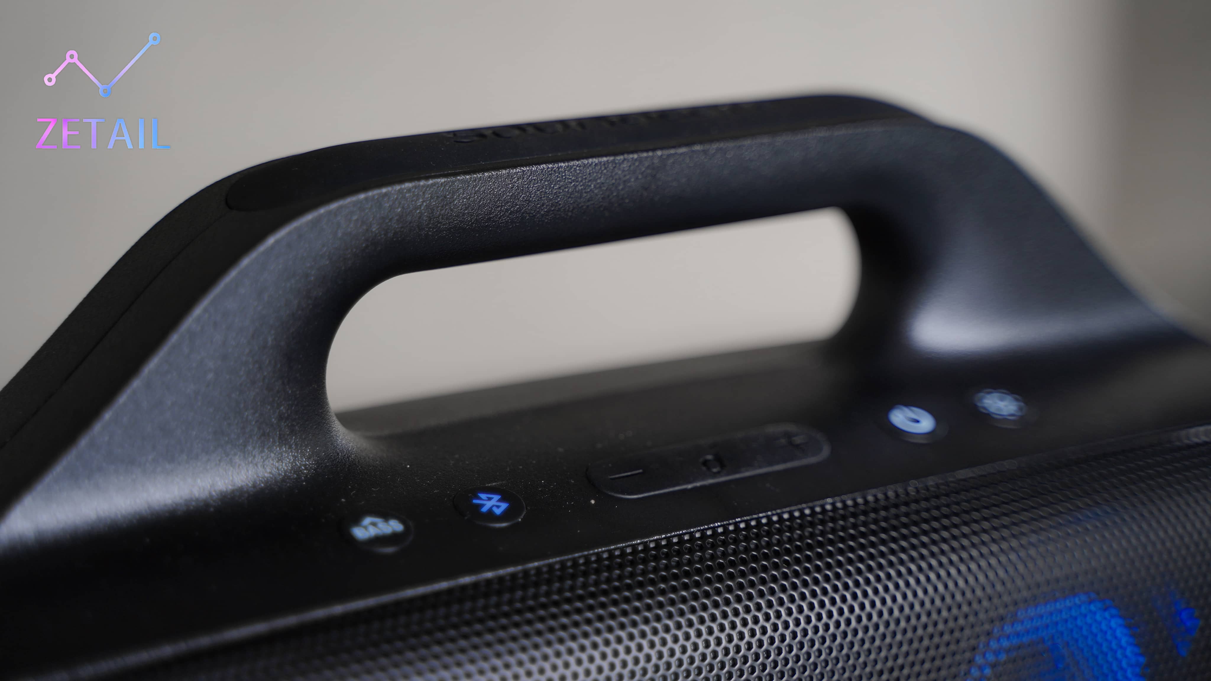 既然主打戶外使用,難免會有一些碰碰撞撞,不過 Soundcore Select Pro 給人一種很耐用、堅固的感覺,外殼整體採用偏粗糙觸感的硬塑膠材質,既不會留下指紋,也不太會有被刮傷的問題,而且提起來相當扎實,再加上它還具備 IPX7 的防水能力,初步來看,我覺得可以很放心地帶 Select Pro 到戶外環境使用,哪怕碰到下雨天應該也不是問題。