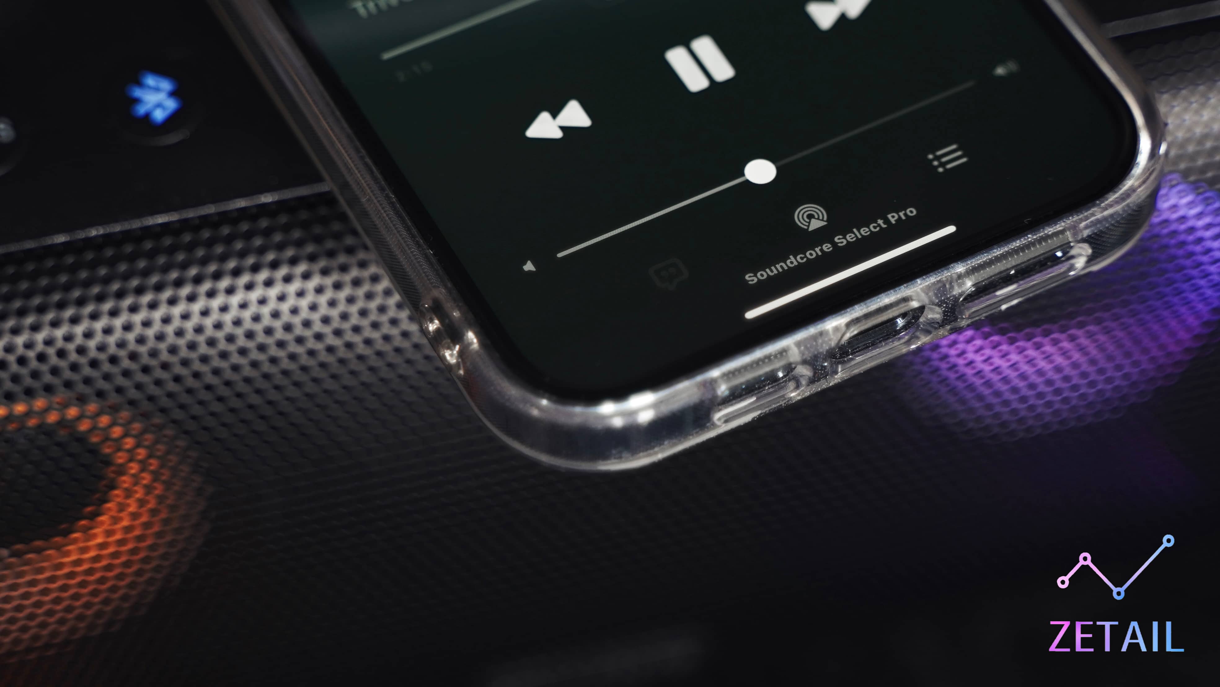 Soundcore Select Pro 內建兩顆全音域喇叭,也就是正面、主要發出聲音的喇叭,除此之外,還有雙被動式輻射器,分別在 Select Pro 的左右兩側,預計可以提供更深沉的低頻表現。總輸出功率的部分跟 Motion+ 一致,都是 30W,音量非常大,對於普通大小的房間來說,不用開到最大聲就會覺得音量已經非常大了,在戶外使用不太需要擔心音量不夠、聽不清楚音樂的問題。
