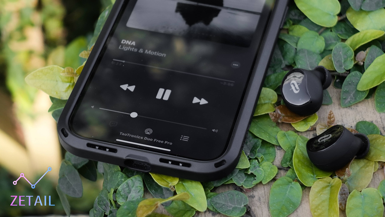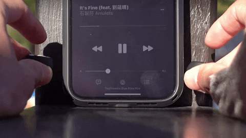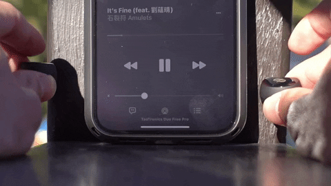 TaoTronics Duo Free Pro 雖然也沒有專屬應用程式可以使用,但它是我最近評測的數款真無線藍牙耳機中,唯一有「入、離耳偵測」功能的,所以當你拿下單邊耳機後,播放的音樂會跟著暫停;而再次戴上耳機時,音樂也會繼續播放,實測偵測的準確度、速度都還不錯,相當方便。