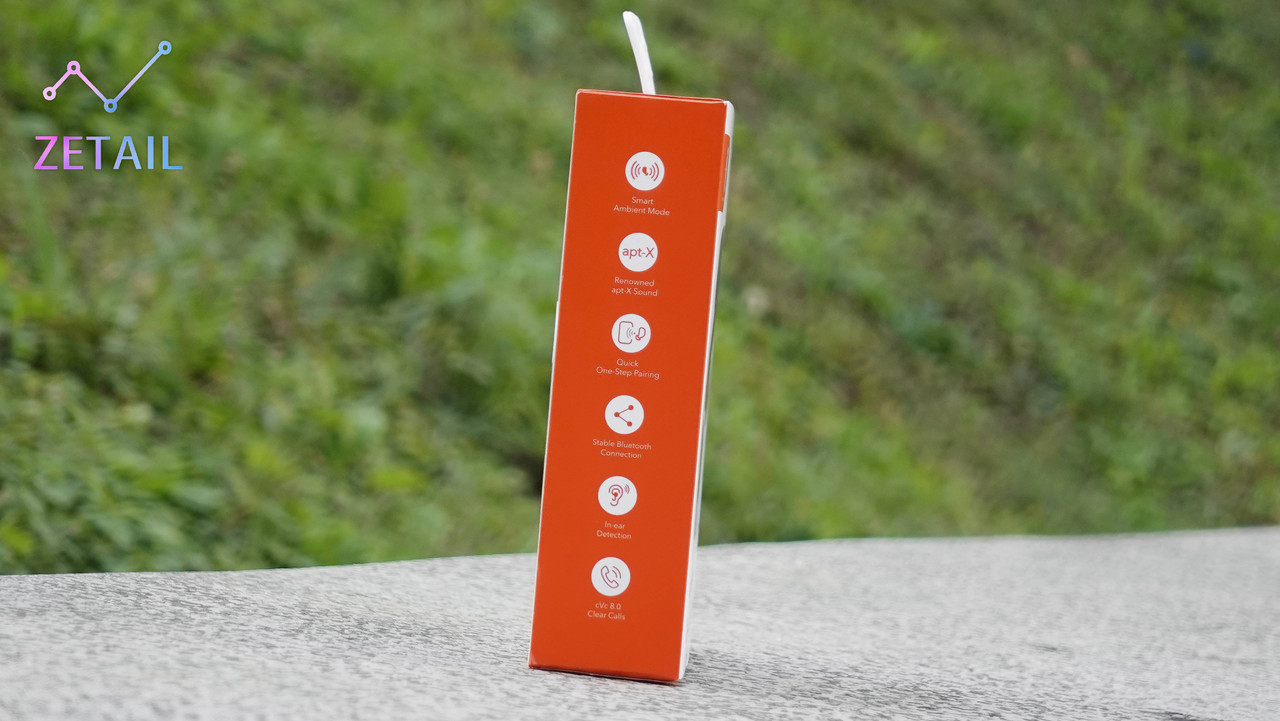 ▲ 盒裝側面還能看到更多產品特色和功能,包括「智慧環境音模式」、「穩定藍牙連線」、「入、離耳偵測」…等。