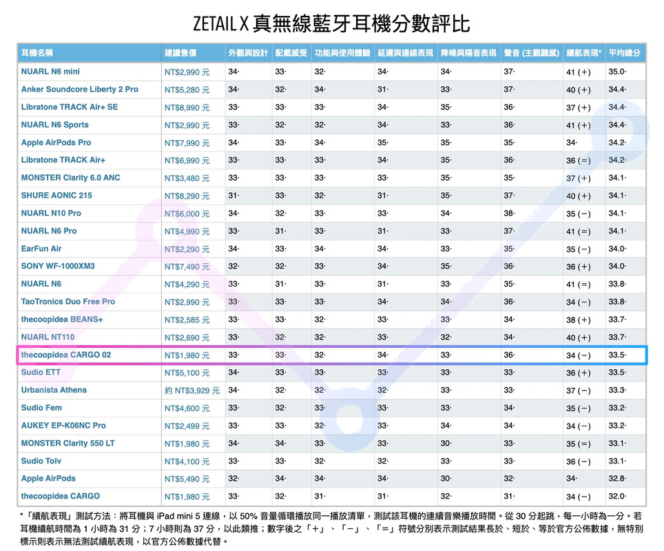 如果你仔細看過 ZETAIL 的耳機分數評比,應該早就發現 thecoopidea CARGO 位列最後一名,三個環節分數墊底的表現,無可避免地令人失望。不過 CARGO 02 完全讓我對這個系列改觀,它真的幾乎改善了 CARGO 的所有缺點,除了唯一不變的平庸的續航能力外,其它部分都超乎我對這個售價的預期。如果你正在物色一款價格親民、風格獨特、表現出色的真無線藍牙耳機, thecoopidea CARGO 02 會是 CP 值很高的選擇。