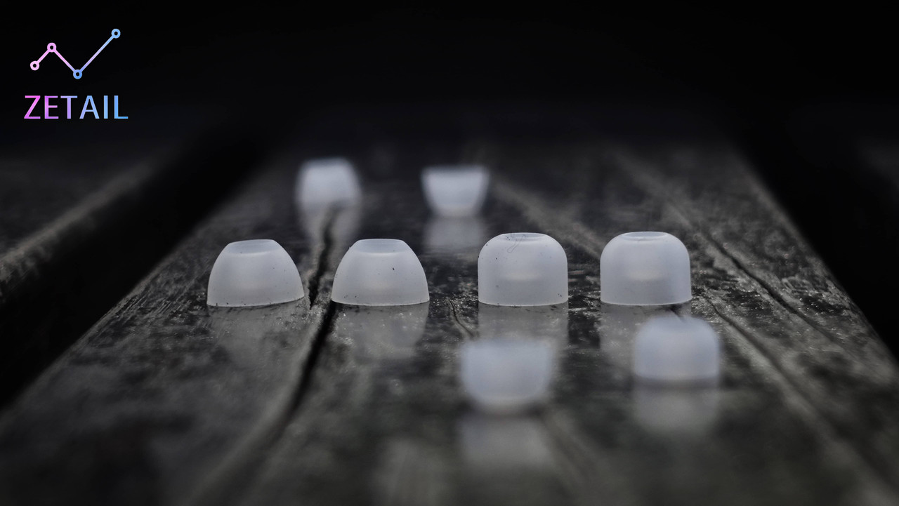 ▲ 盒裝內隨附兩種款式的耳塞,分別是「低音耳塞」(左邊兩個)與「平衡耳塞」(右邊兩個)。