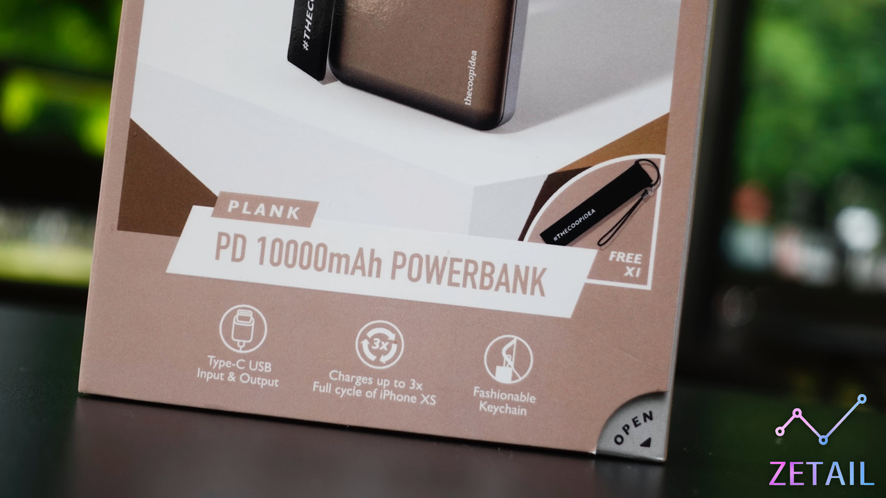 thecoopidea 的 PLANK 行動電源在外觀也是走簡單大方的設計風格,正面和背面分別是 thecoopidea 的 Logo 跟技術規格資訊,看起來真的就像是一塊「plank (板子)」。PLANK 的體積和之前我開箱過的大部分 10,000mAh 電池容量的行動電源相差無幾 (和 Zendure SuperMini 當然不能比啦…),算是很合理的大小,隨身放在包包裡也不會太困難。