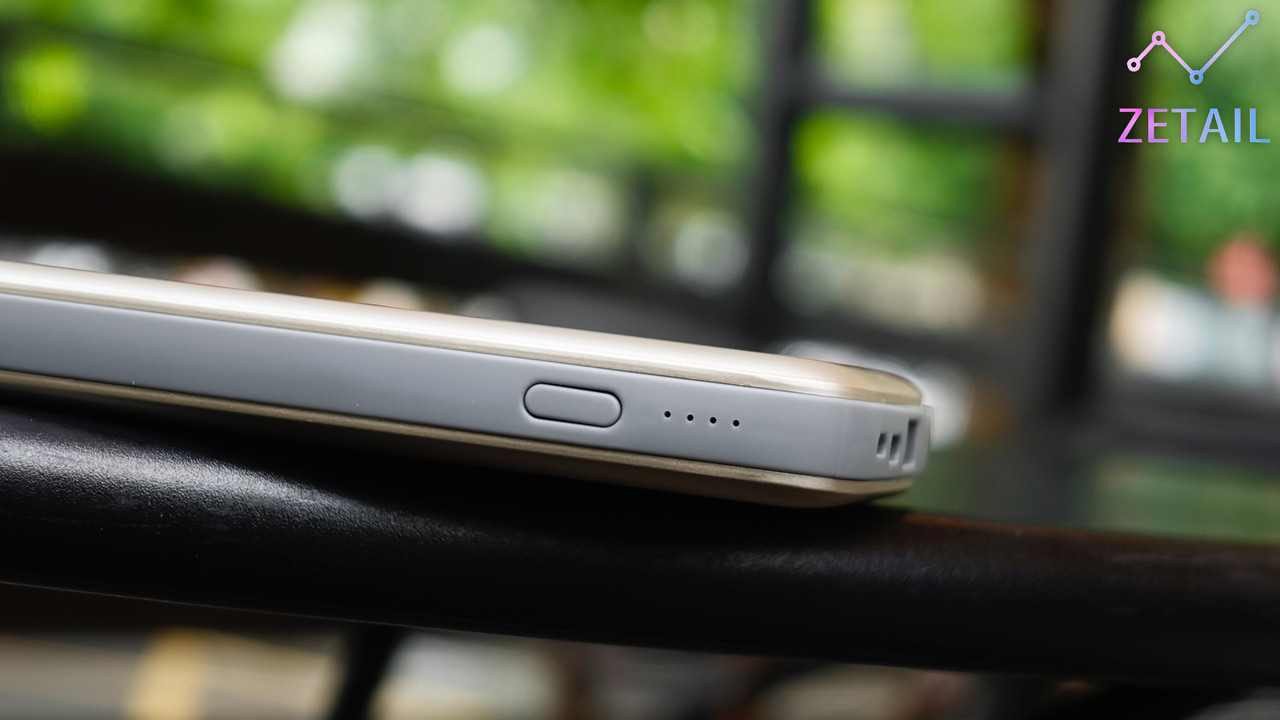 ▲ 另外,在行動電源側面有一個電源鍵跟四顆 LED 電量提示燈。