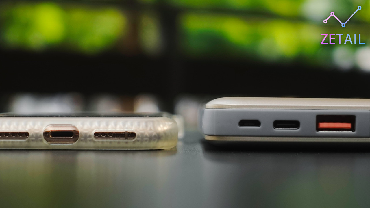 充電插槽: 一個 USB Type-C (輸入 / 輸出)、一個 Micro USB (輸入)、一個 USB Type-A (輸出)