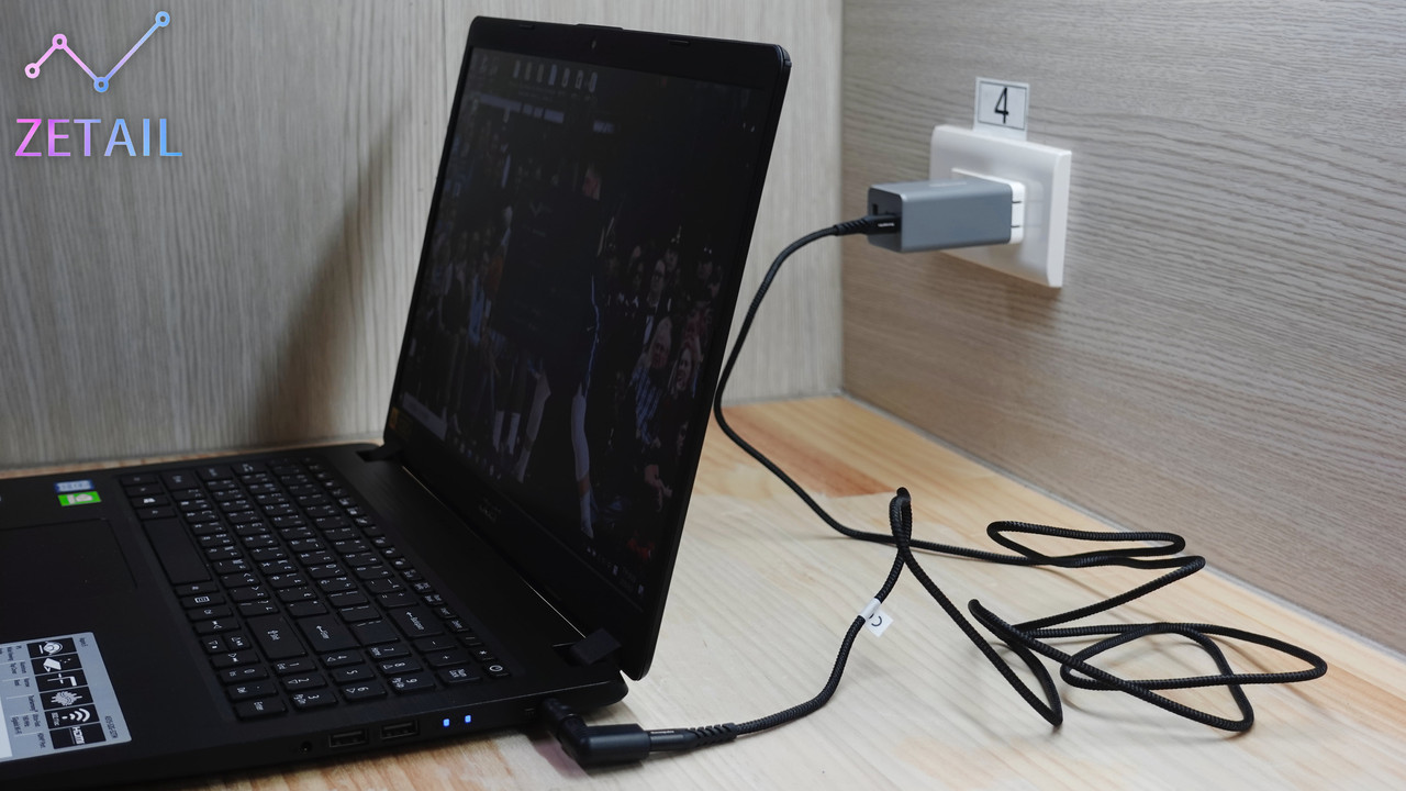 ▲ 當然,我也實際找了一款 USB Type-C 插槽不支援 PD 充電的筆電來進行測試,使用時就像上圖,會經過兩個轉接頭。