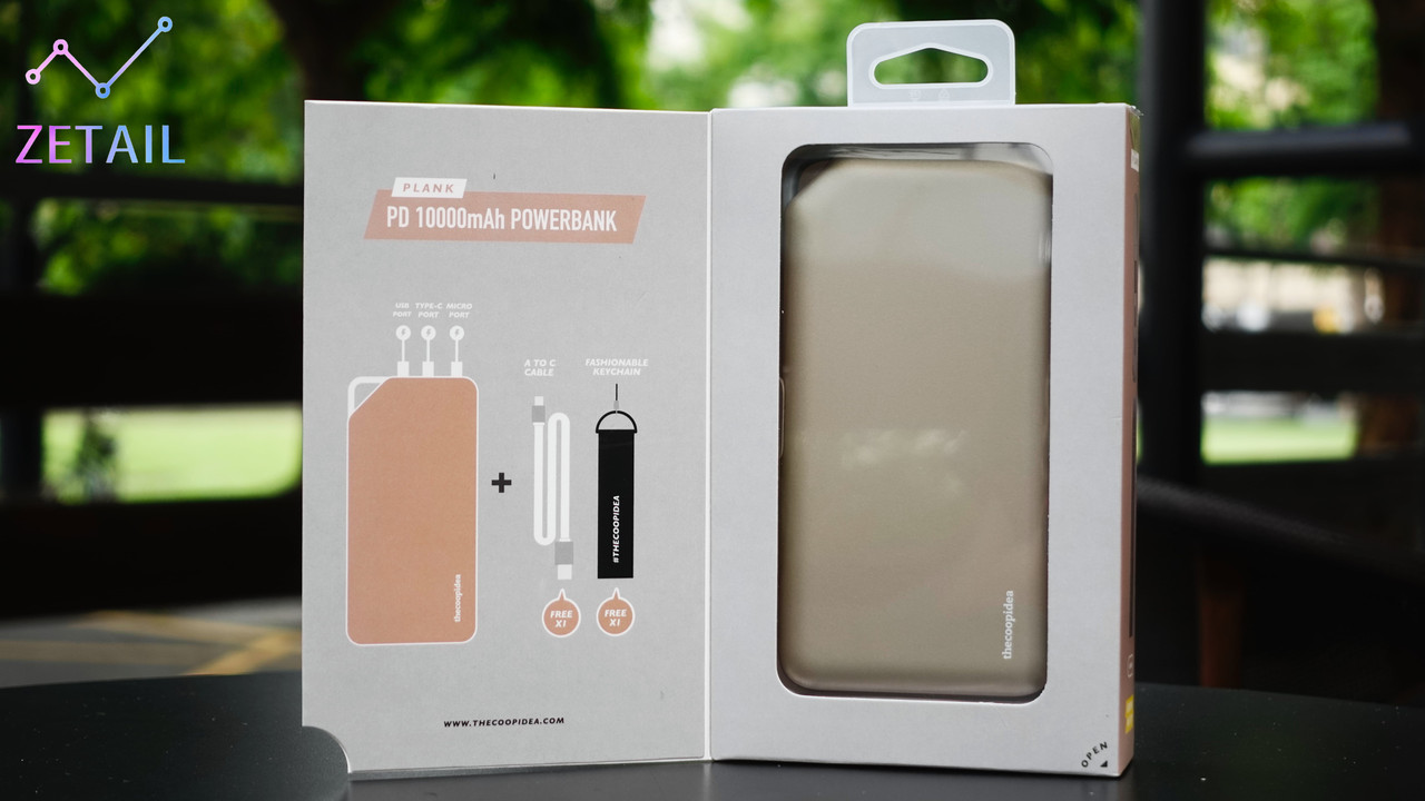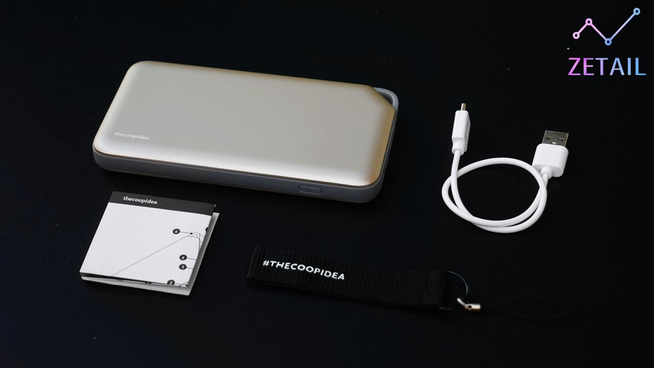 ▲ 盒裝內的內容物如上圖,包括 PLANK 行動電源、一條 USB Type-C 充電線 (無 Logo)、一個 thecoopidea 品牌鑰匙圈,以及快速上手指南。