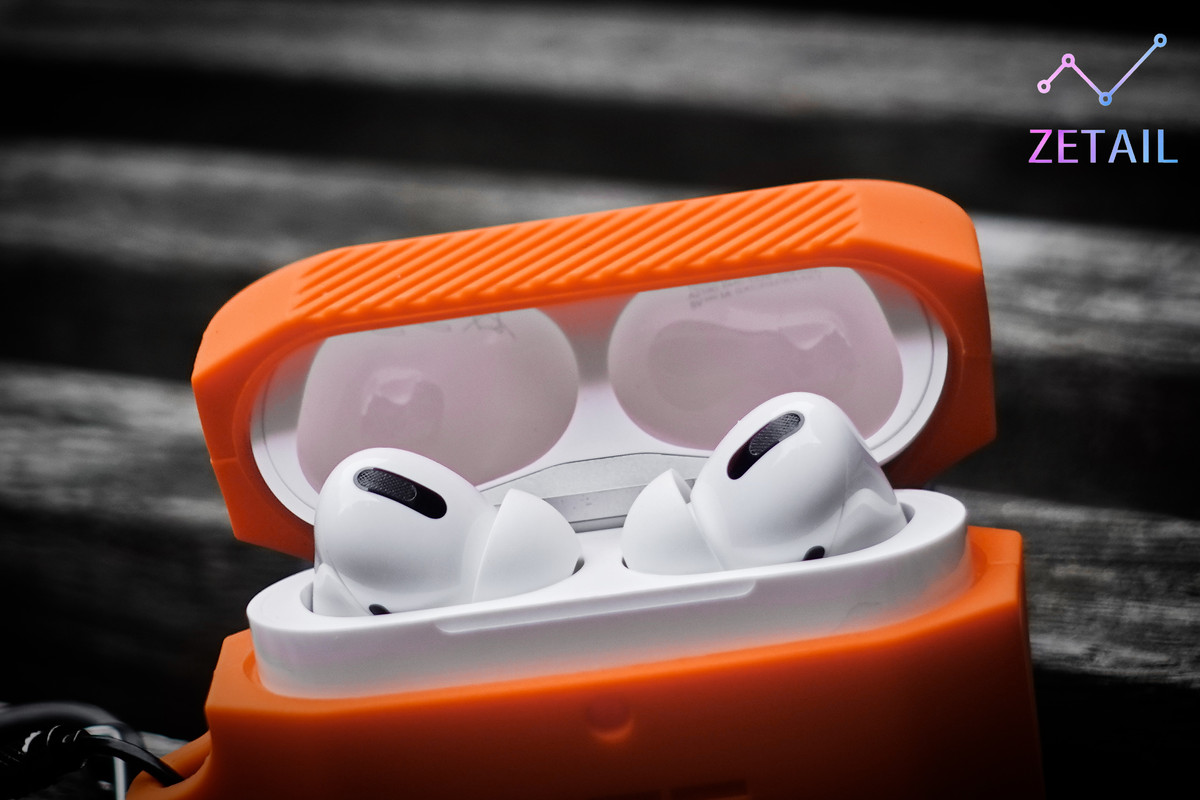 ▲ 可以看到不管是「極黑色」還是「橘色」的 AirPods Pro「軟殼」,使用時 AirPods Pro 充電盒本身的蓋子都會像是「陷進去」保護殼的蓋子。