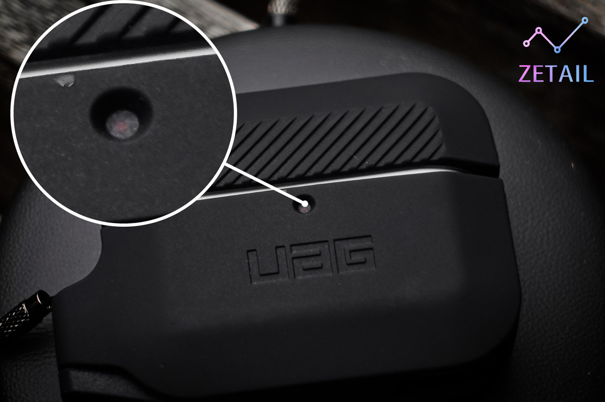 ▲ UAG 有在 AirPods Pro「軟殼」的背面設計 AirPods Pro 配對按鍵的位置提示。