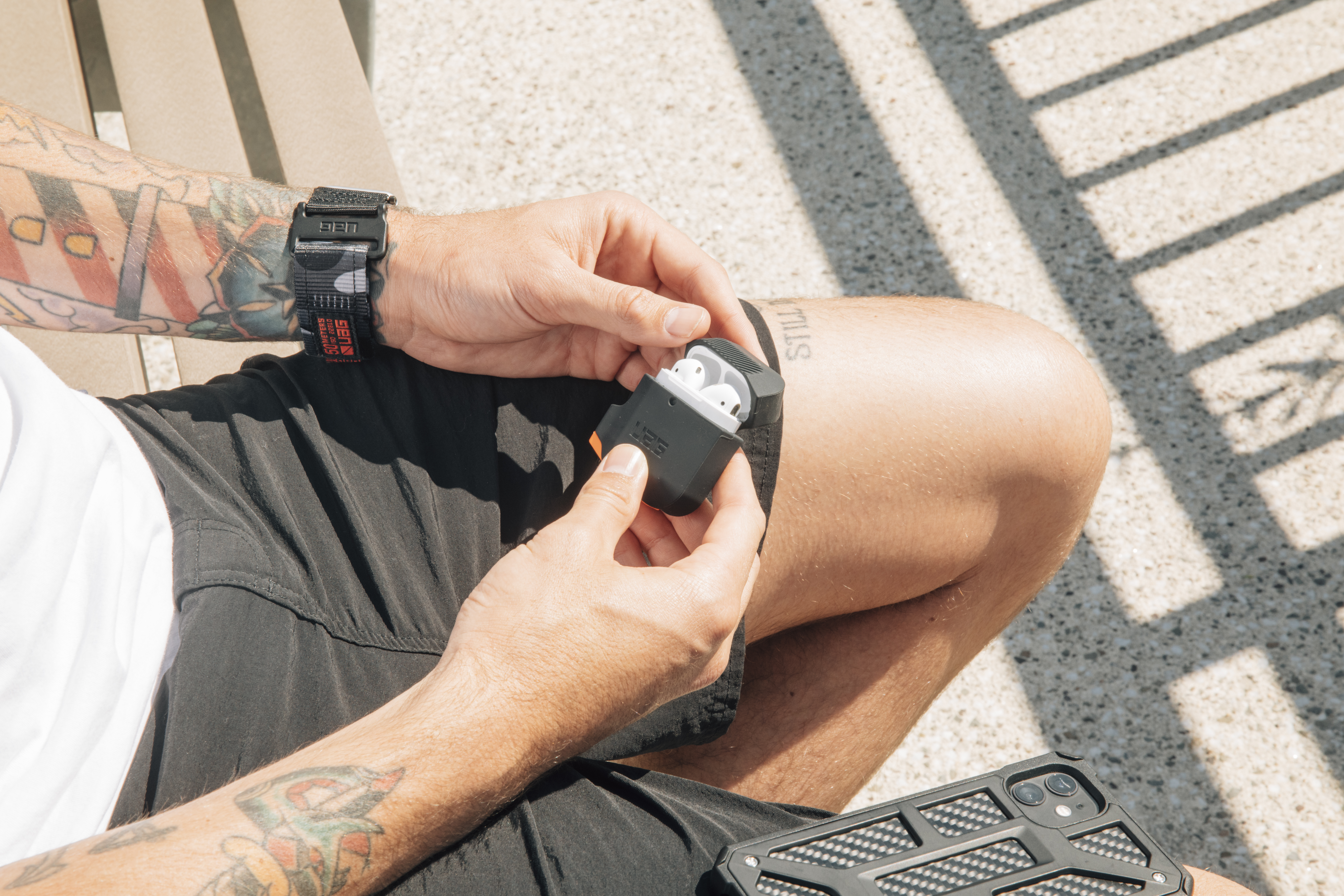 ▲ UAG 透過上蓋的斜線紋路設計加強 AirPods Pro 保護殼的風格。