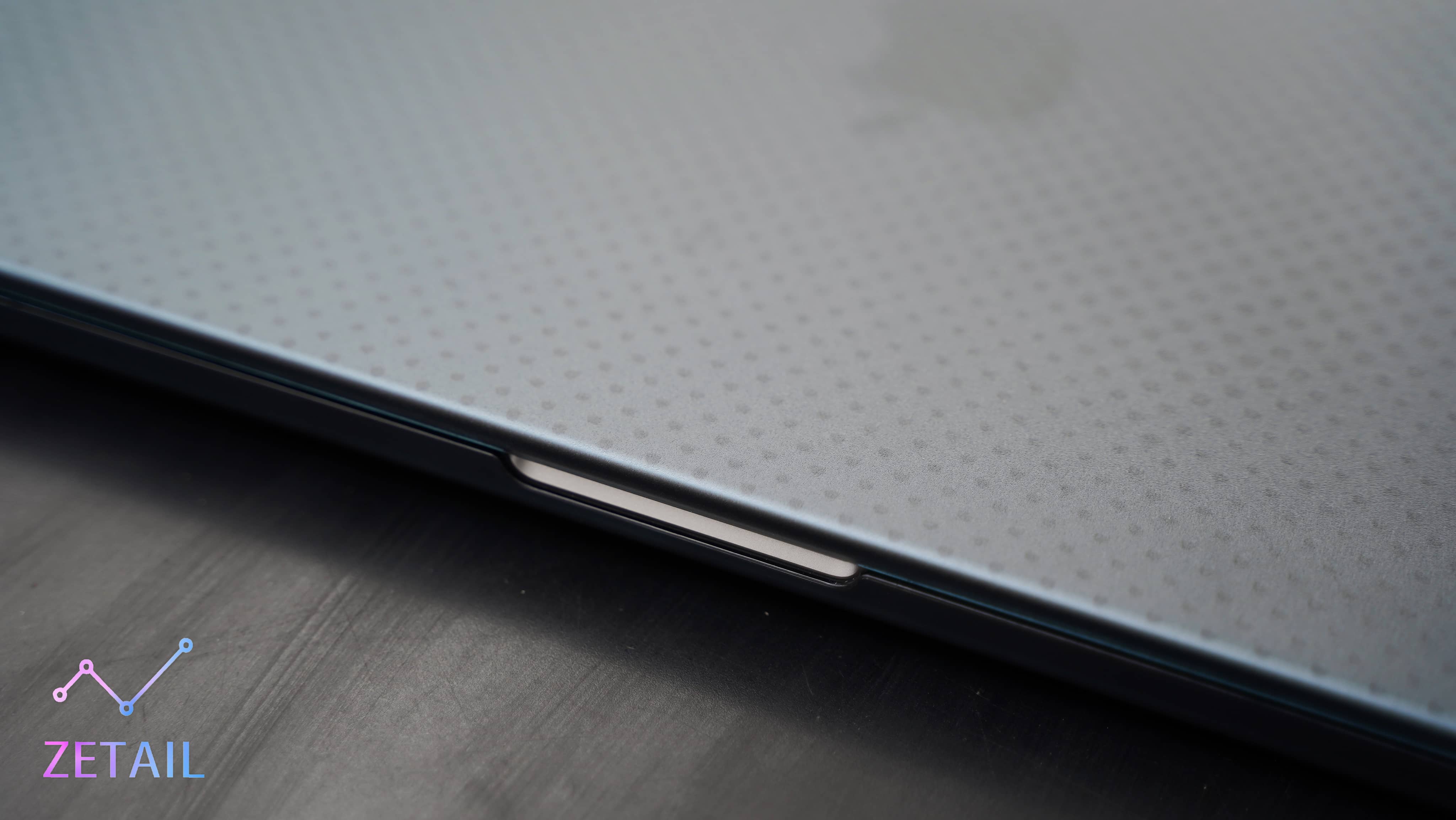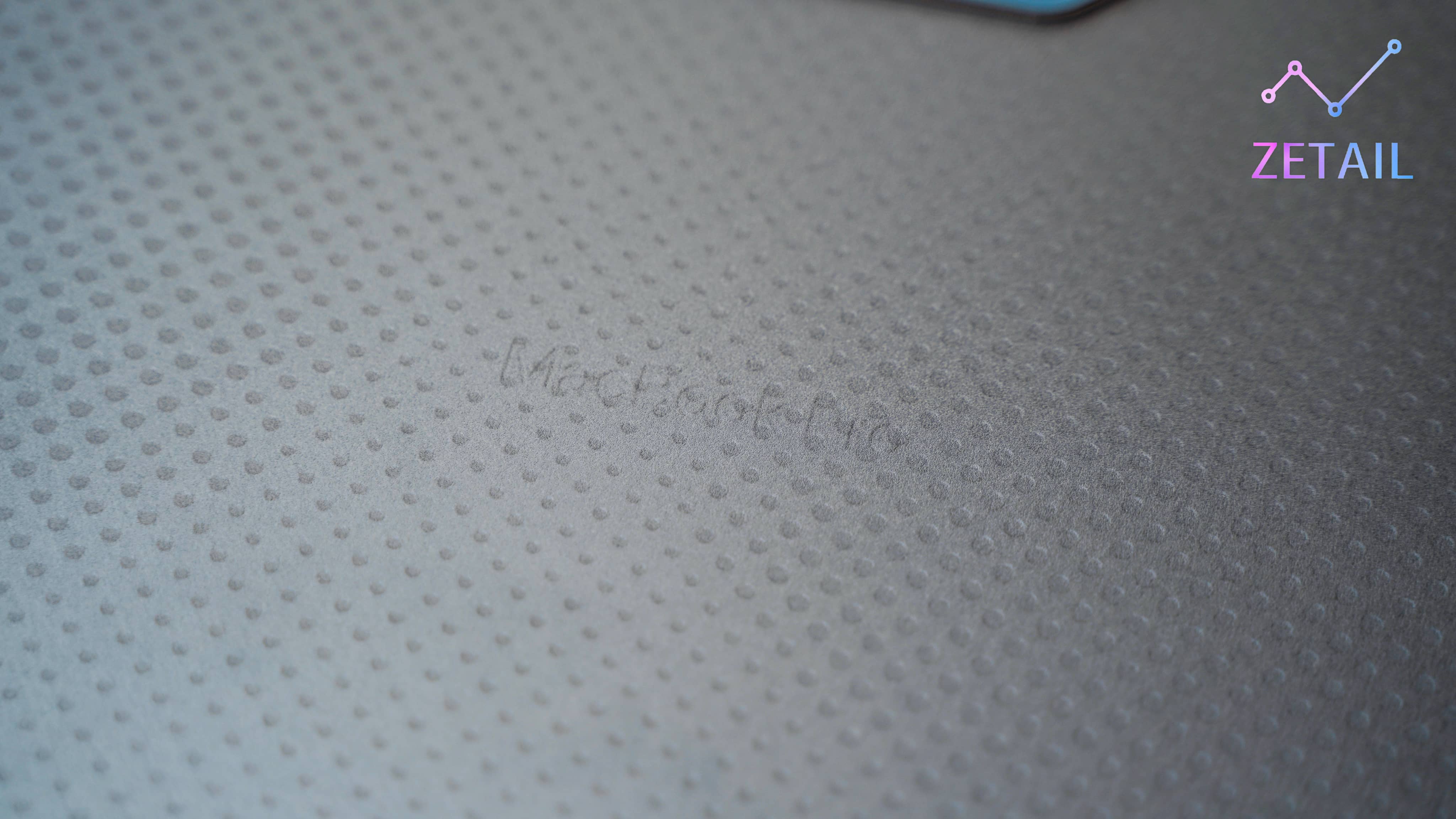 ▲ 不過因為磨砂與霧面的處理,讓「點點」造型從外面看起來不會太顯眼,至於 MacBook 上面本來的蘋果 Logo 與型號字樣也還依稀可見。