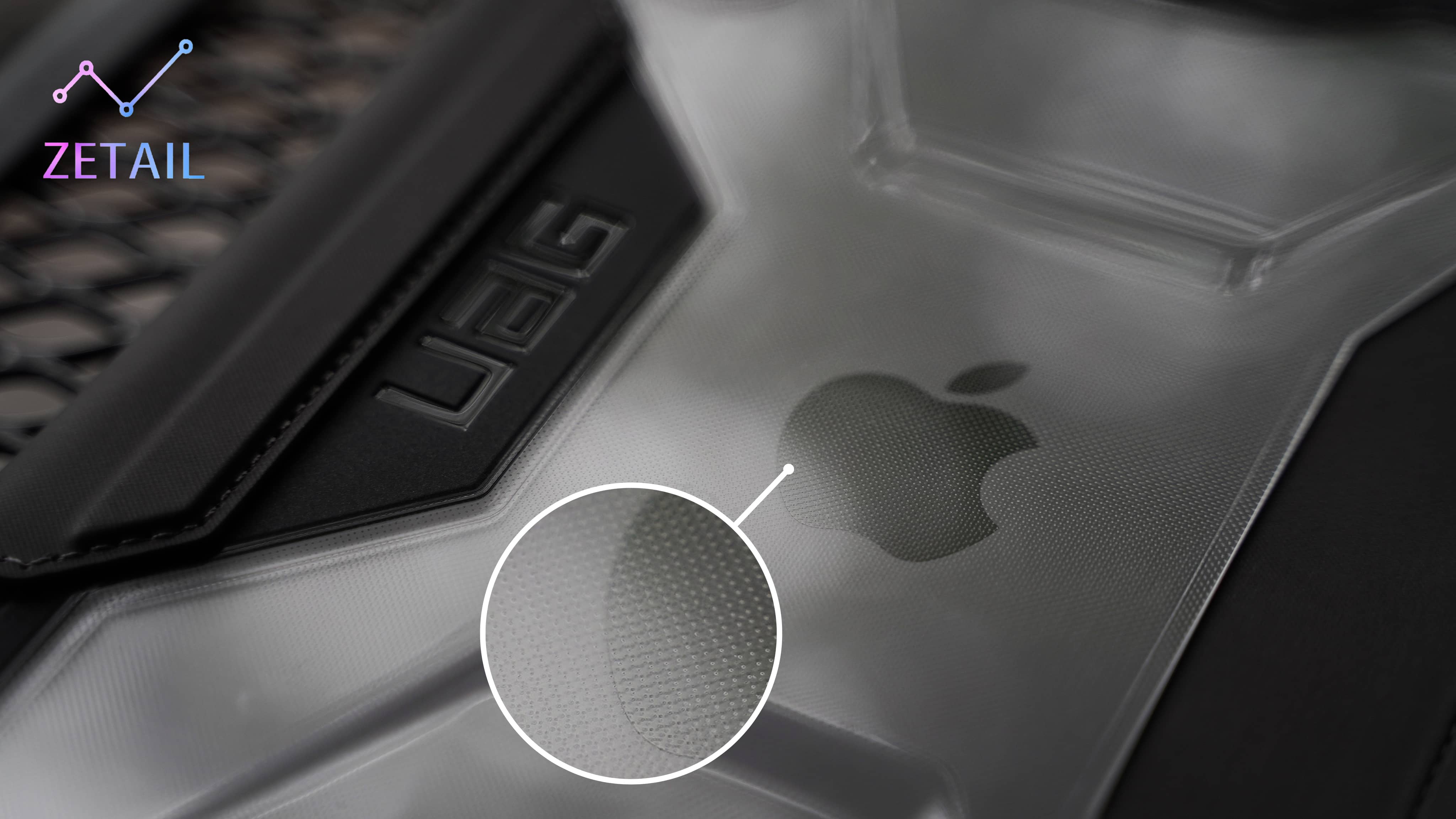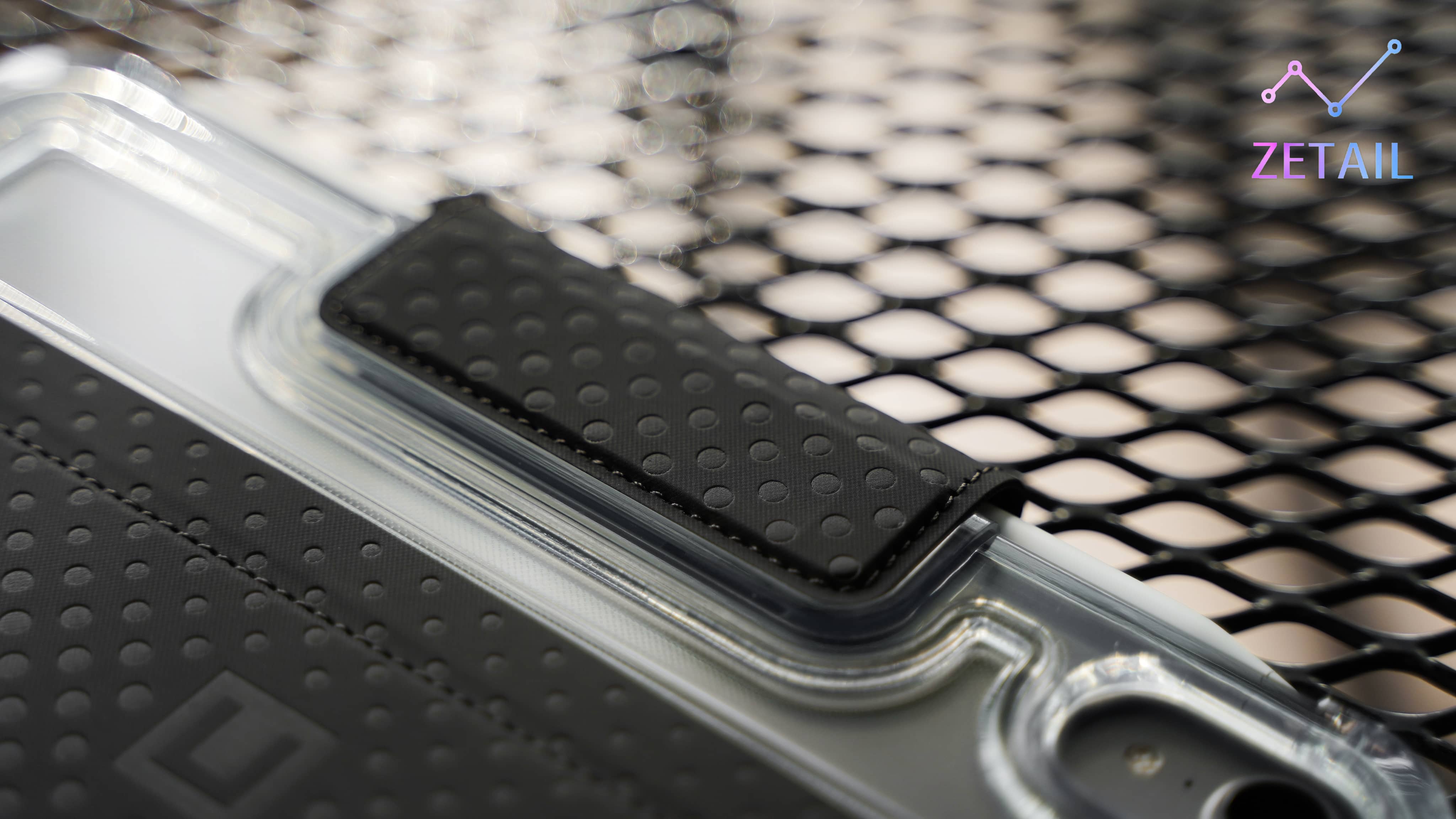 ▲ 靠近一點看可以發現透明的部分有用上點陣設計,同時,UAG 也強調你可以使用酒精棉片來擦拭、清潔 PLYO,這不會傷害到保護殼。