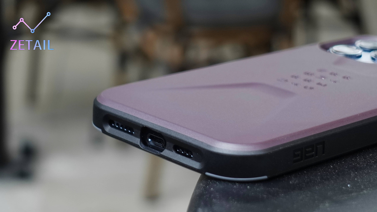 為了做到 Civilian 背板「高低差」的設計,UAG 選擇以「高處」為基準,直接增加整個保護殼的厚度,這樣的好處是他們可以在不用特地於背板四角加入「小小凸起」墊高保護殼的前提下,同時把 Civilian 的背板「做平」,維持視覺上的簡潔感和一體感;然而,這也導致 qi 無線充電與 Apple Pay 都僅是勉強能用,甚至未必支援所有無線充電器,而 MagSafe 雖然可以充電,也能感受到極微弱的吸力,但不會正確出現 MagSafe 充電器的充電動畫。