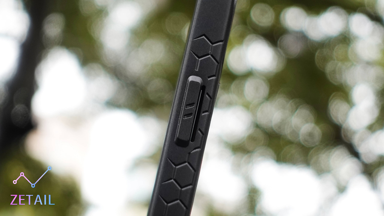UAG 有在 Monarch 保護殼的耐衝擊橡膠邊框加入「蜂巢紋路」,一方面可以增強視覺上的設計感;另一方面還提升了保護殼的摩擦力、握持穩定性,再加上圓潤的邊角處理,Monarch 保護殼的握感不會過於方正或「割手」。Monarch 採用「軟式橡膠按鍵」,實際回饋很出色,而且按壓起來並不費力,成功延續了之前留給我的好印象。