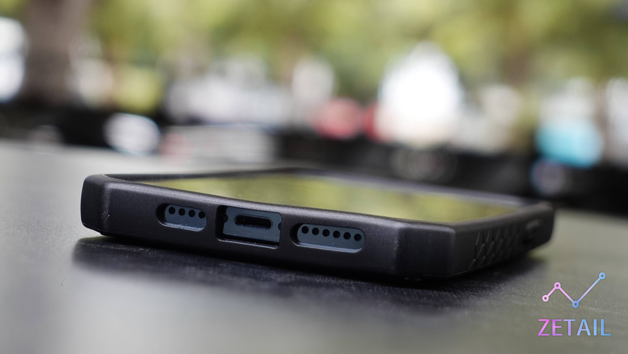 Monarch 保護殼的開孔很精準,而且同樣有替 Lightning 插槽的開孔加大處理。你可能需要注意的是,根據我的實際測試,Monarch 保護殼可以使用 qi 無線充電,但對充電位置的精準度要求非常高,所以記得要先確認手機已經進入充電狀態再離開;MagSafe 磁吸充電器則是無法使用。當然,如果你會擔心這些狀況,先到實體店面測試看看再購買還是最保險的。