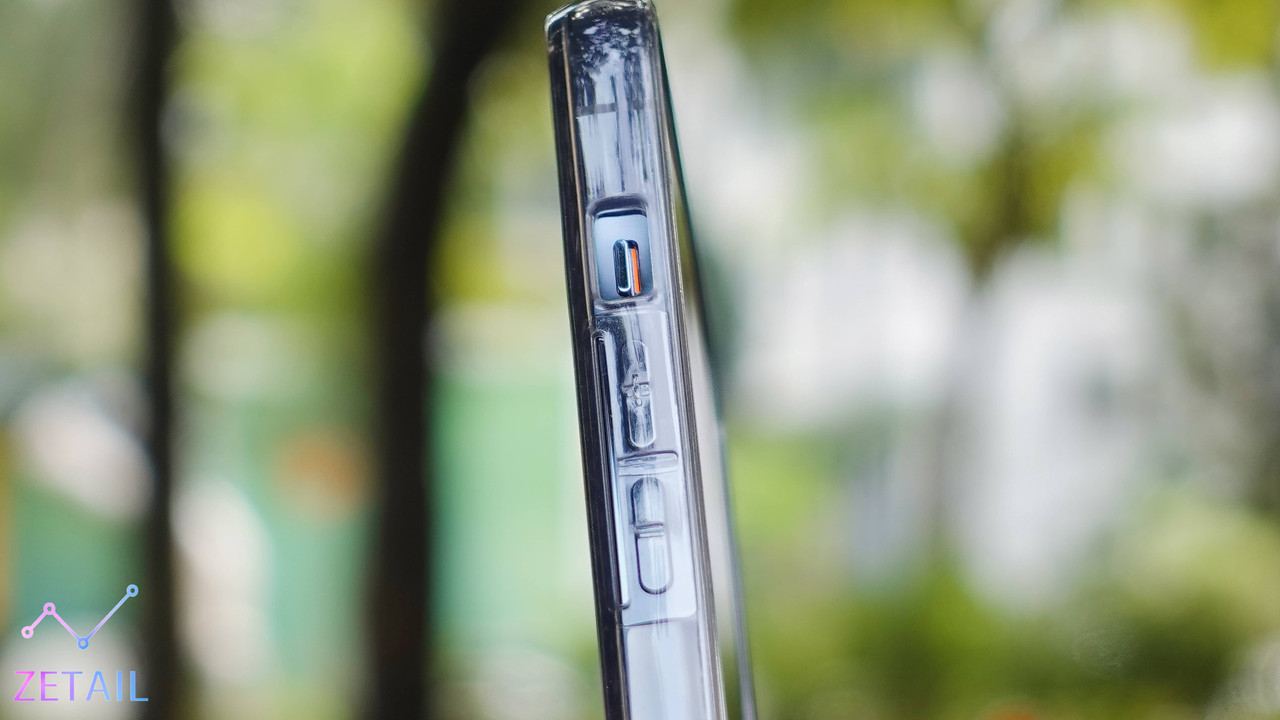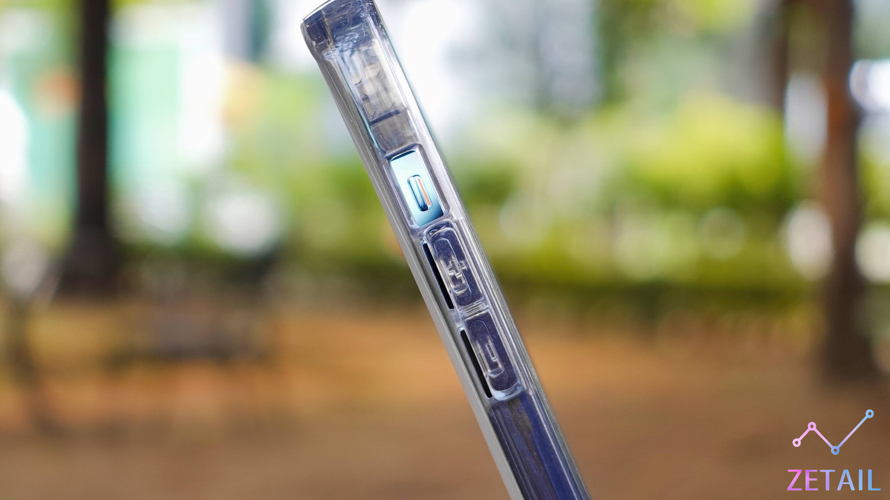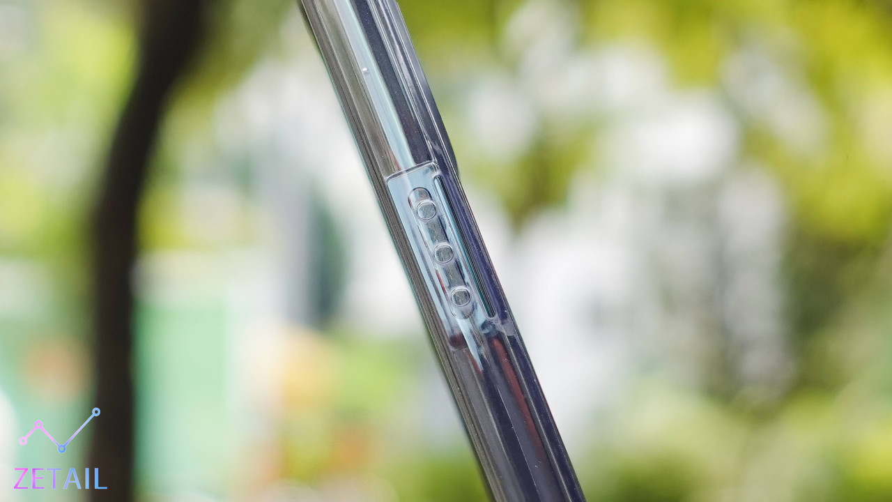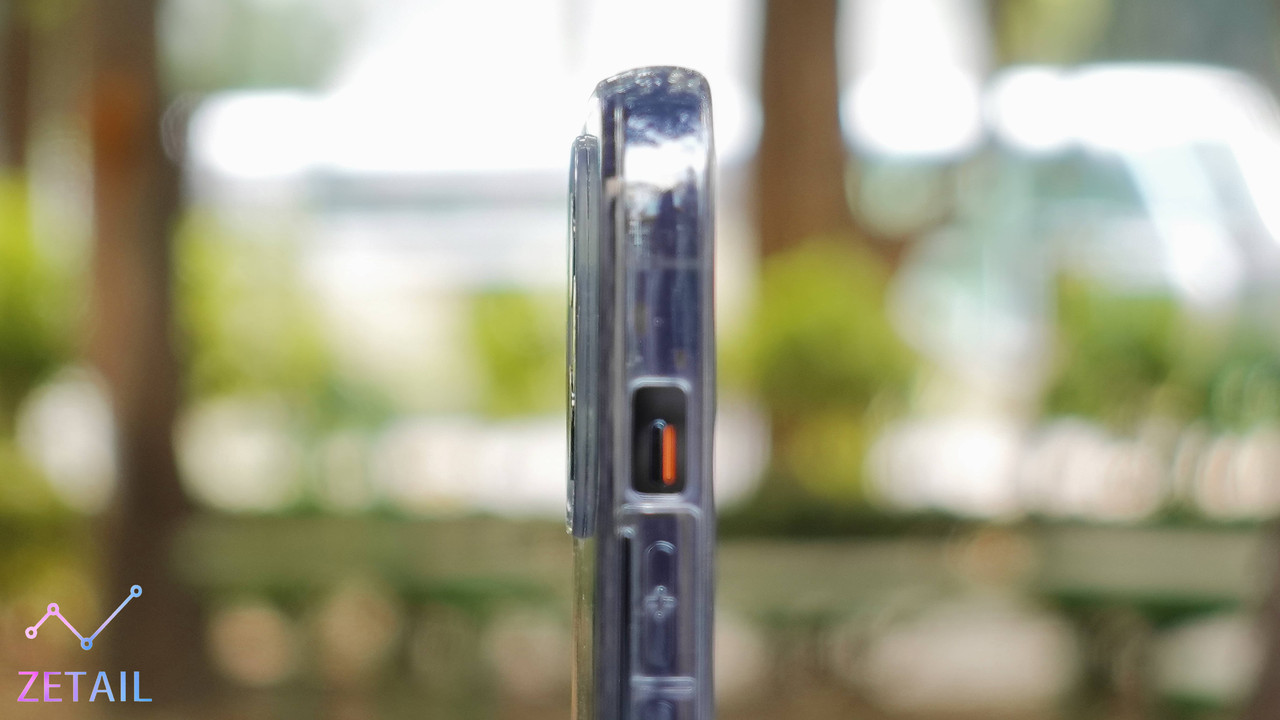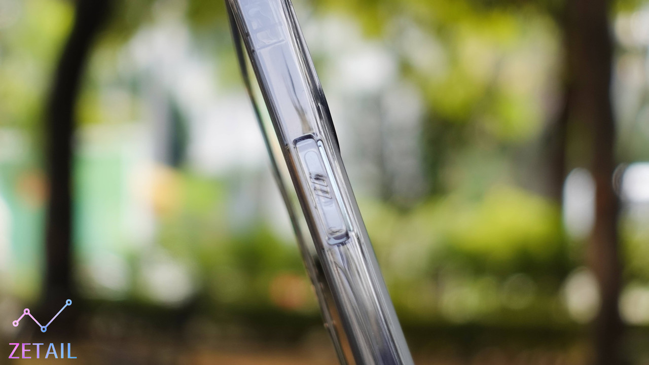Lucent 是「一體成型」的結構,而且因為背板和邊框都有一定的柔韌性,所以可以彎折,在拆裝保護殼的時候都更容易,這點做得很好。比較特別的是,UAG 特意把 Lucent 的邊框做成平面,按鍵的位置都沒有凸起,因此即便按鍵很好按、按壓回饋具體,但你也得先找到按鍵的位置,我並不覺得按鍵上面的小小紋路對提示位置有太大的幫助,使用時還是需要一段時間來習慣。