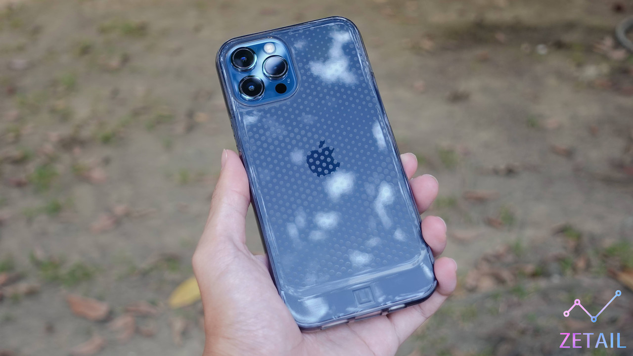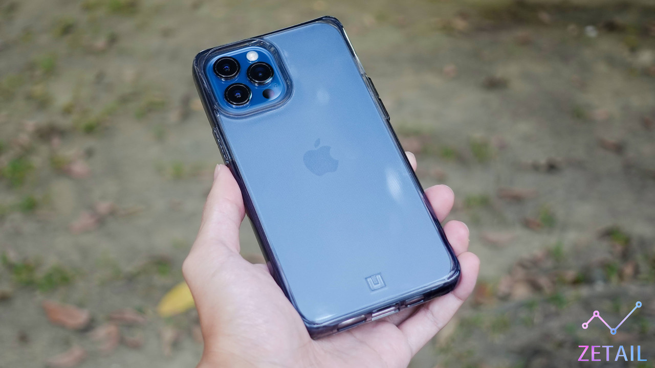 ▲ 裝上 Mouve 保護殼的 iPhone 12 Pro Max 還是可以清楚看到蘋果的 Logo 和背板顏色。同時,UAG 也強調 Mouve 保護殼所使用的是頂級「抗 UV」塑膠材質,可以降低長時間使用氧化變黃的可能。