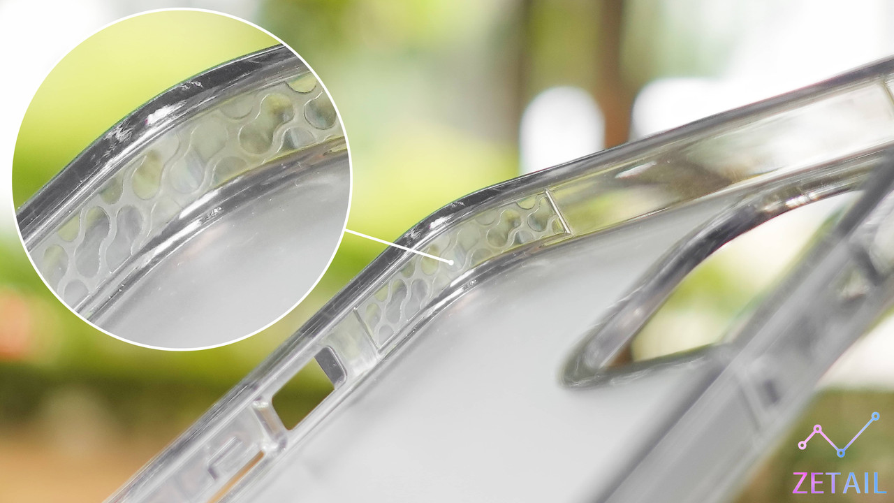 ▲ 邊角的「蜂巢結構」設計讓 Mouve 保護殼具備 2.44 公尺的防摔能力。